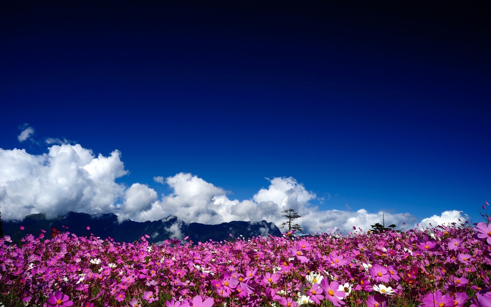 Prairie avec des arbres verts sur fond de montagnes enneigées
