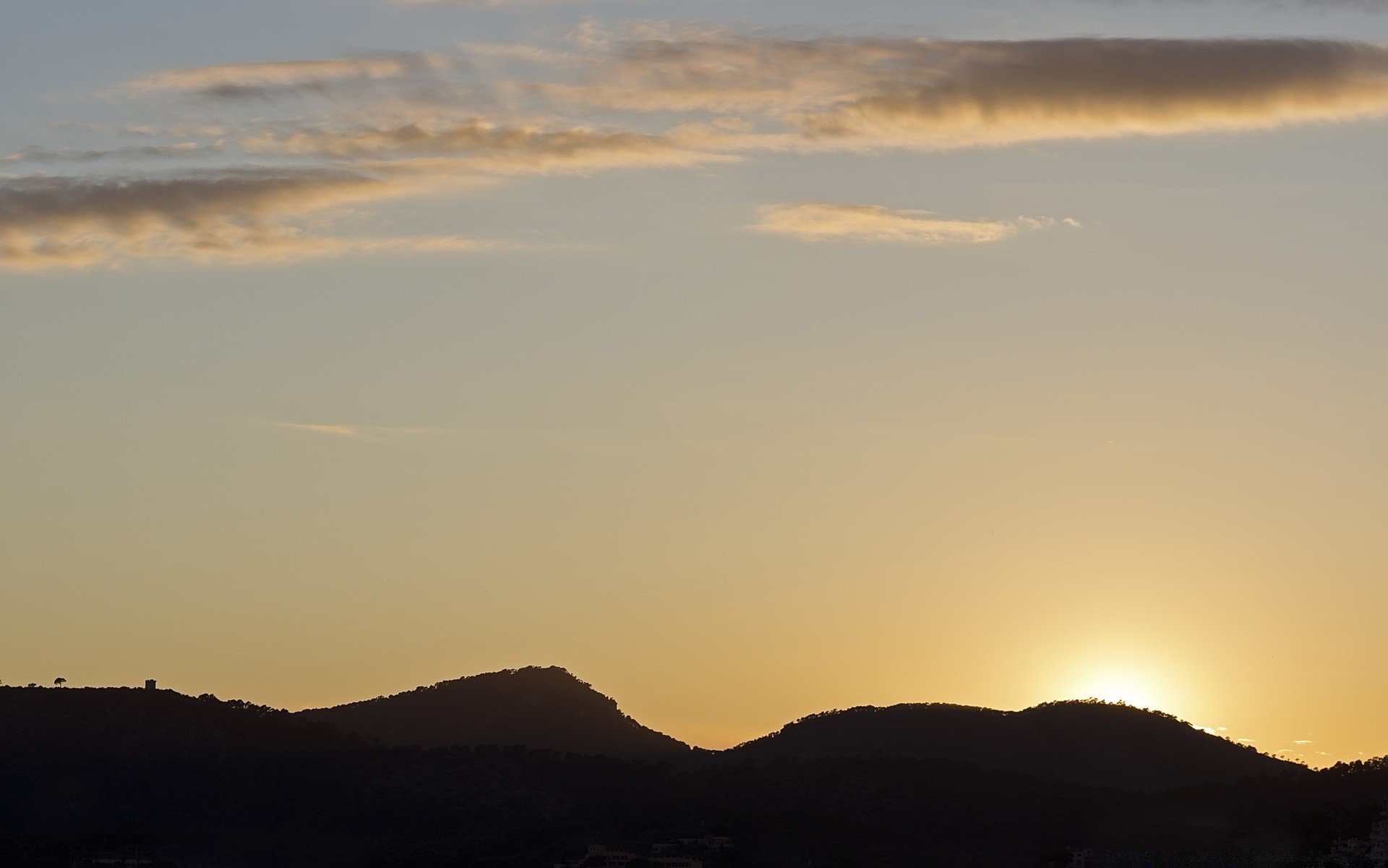Ville en Amérique noir et blanc sur fond de ciel orange