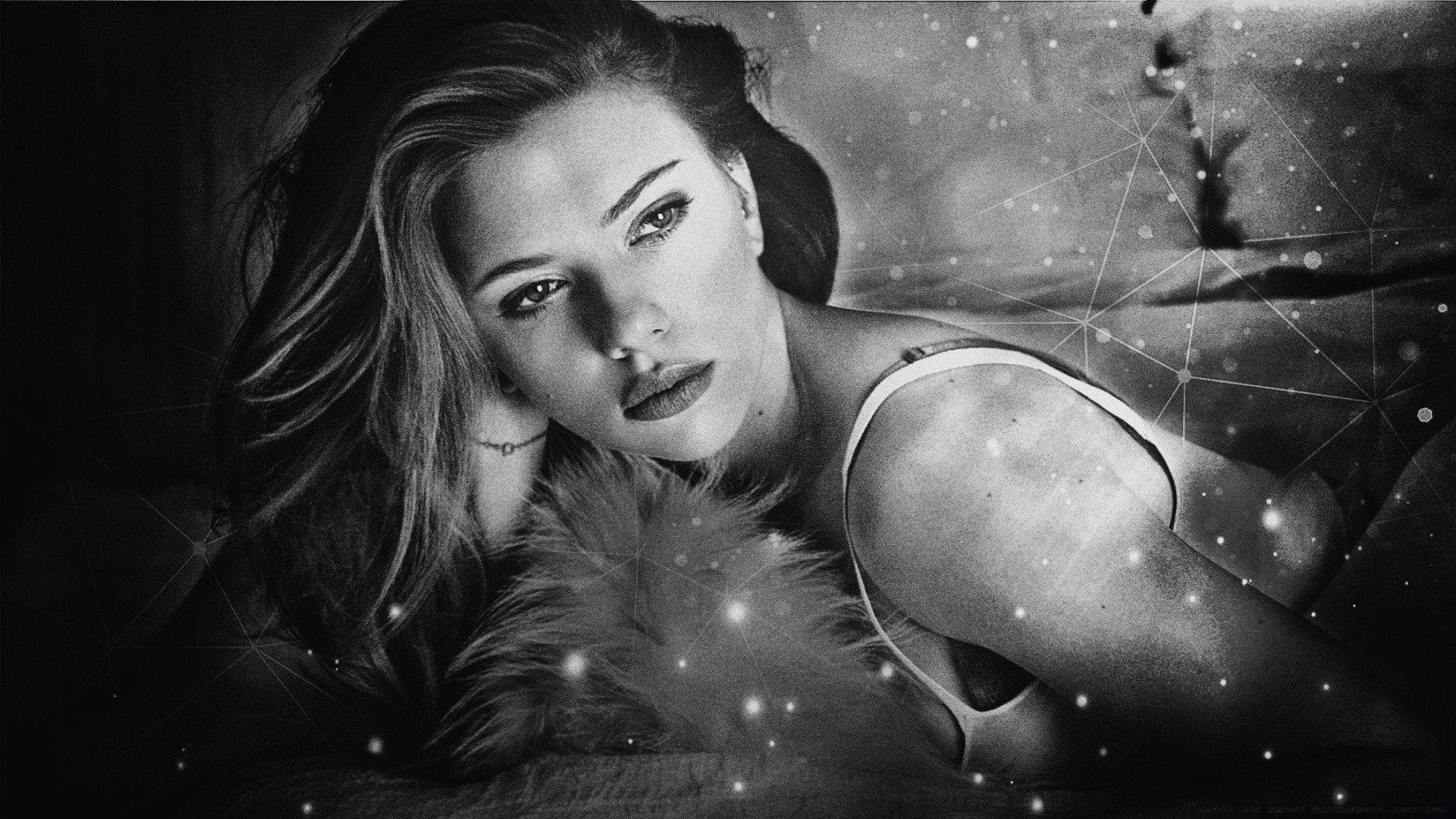 Portrait Monochrome d'une jeune fille dans les étoiles sur fond noir