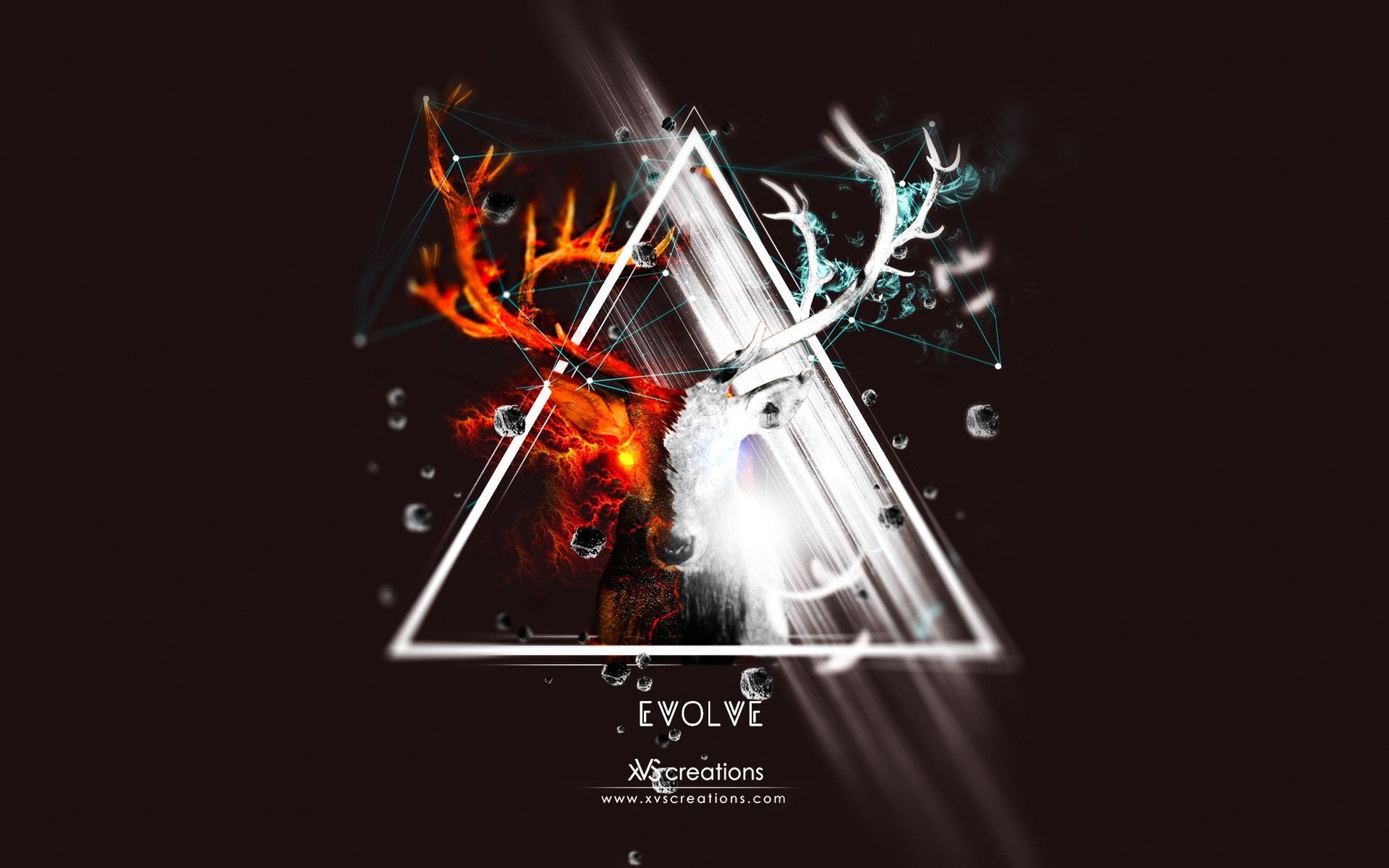 Image d'un cerf sous la forme du mal et du bien dans un triangleImage d'un cerf sous la forme du mal et du bien dans un triangle