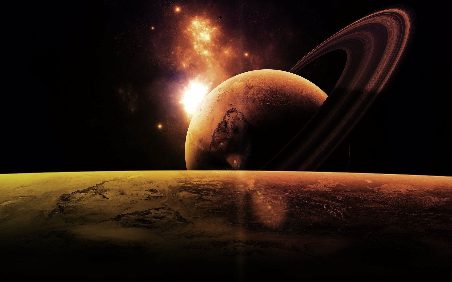 Planètes sur fond de galaxies brûlantes