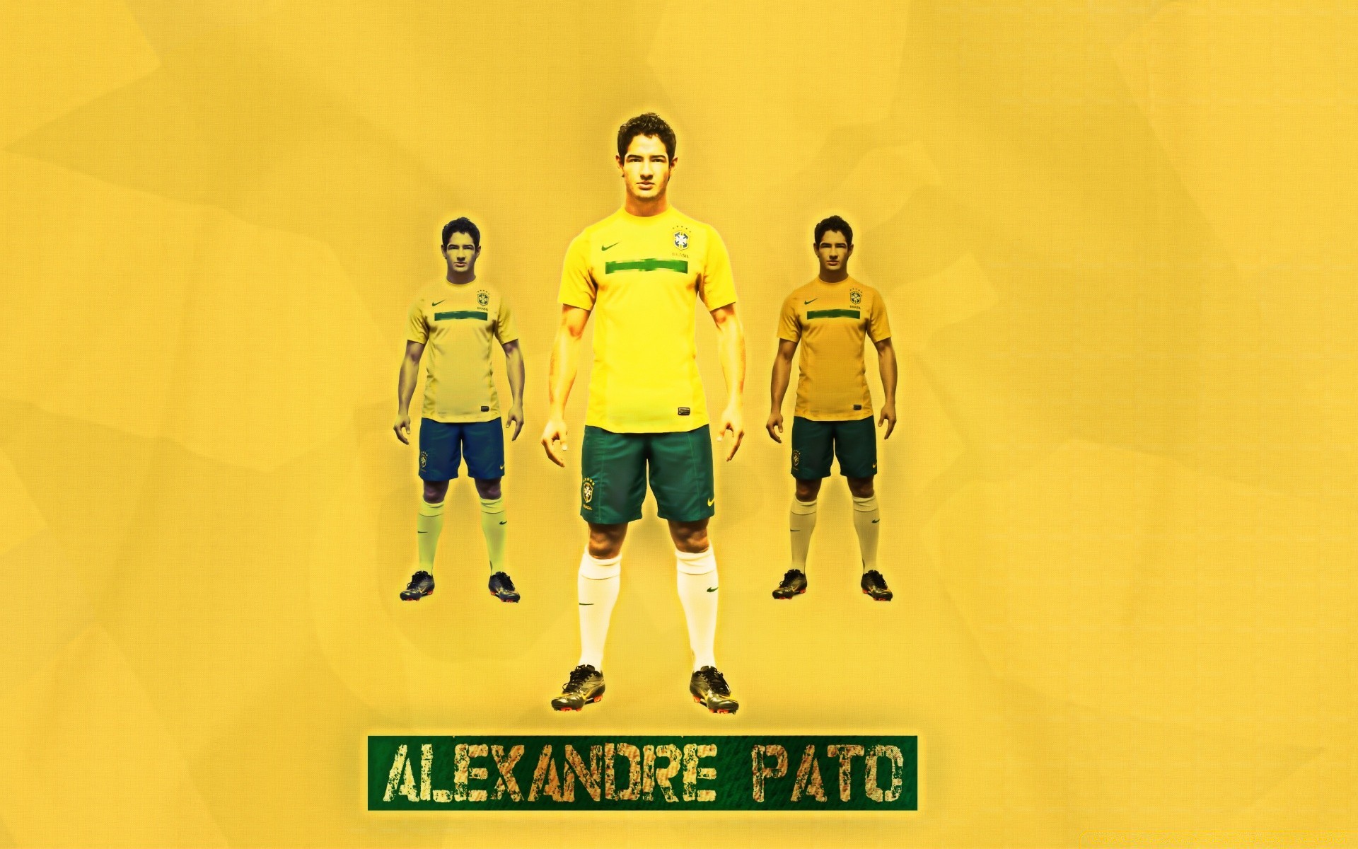 Footballeur Alexandre Pato sur fond jaune vif