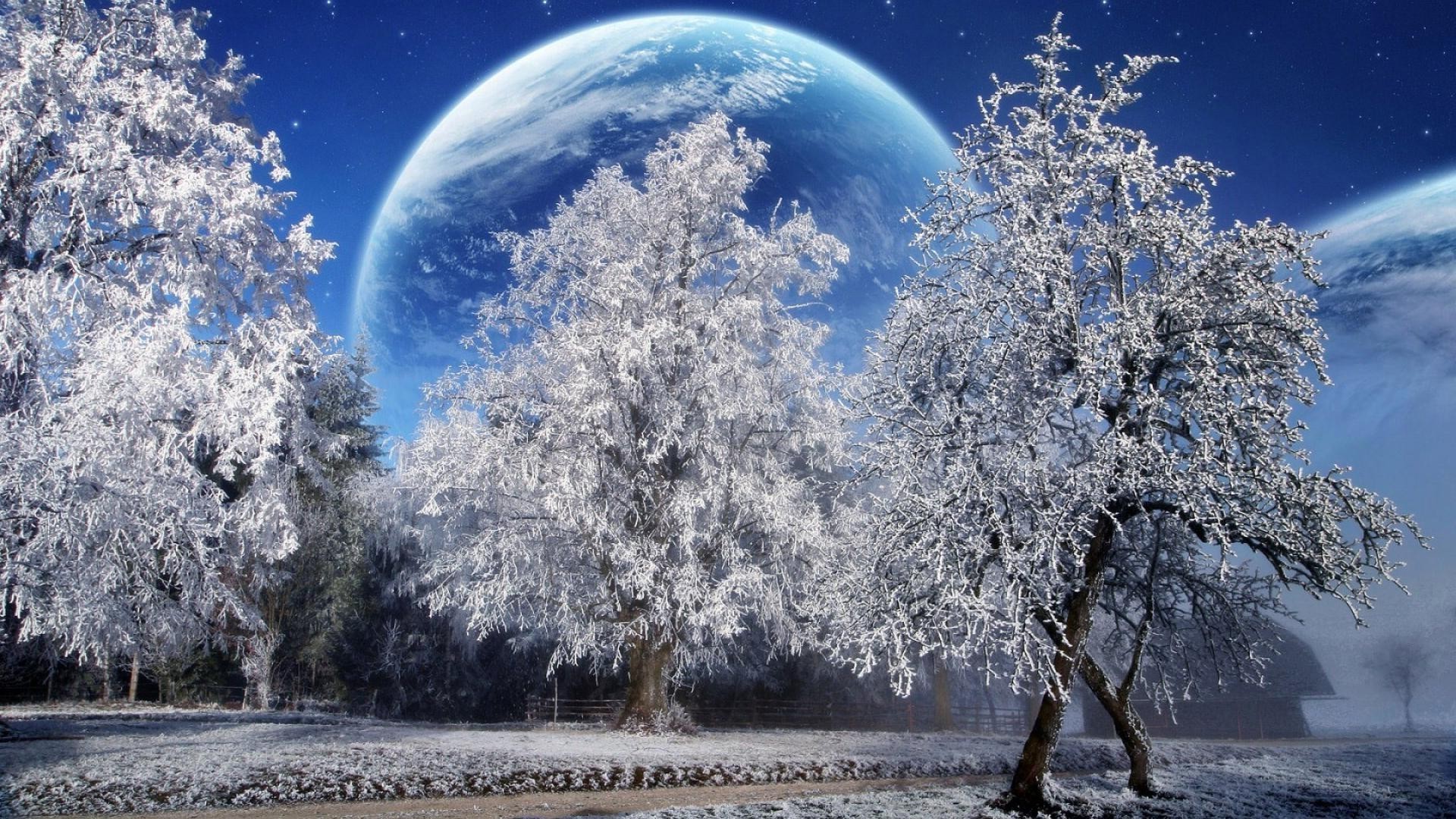 Nuit froide et glaciale, grande lune