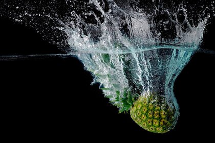 Fraise bleue inhabituelle de l'eau avec des particules qui volent