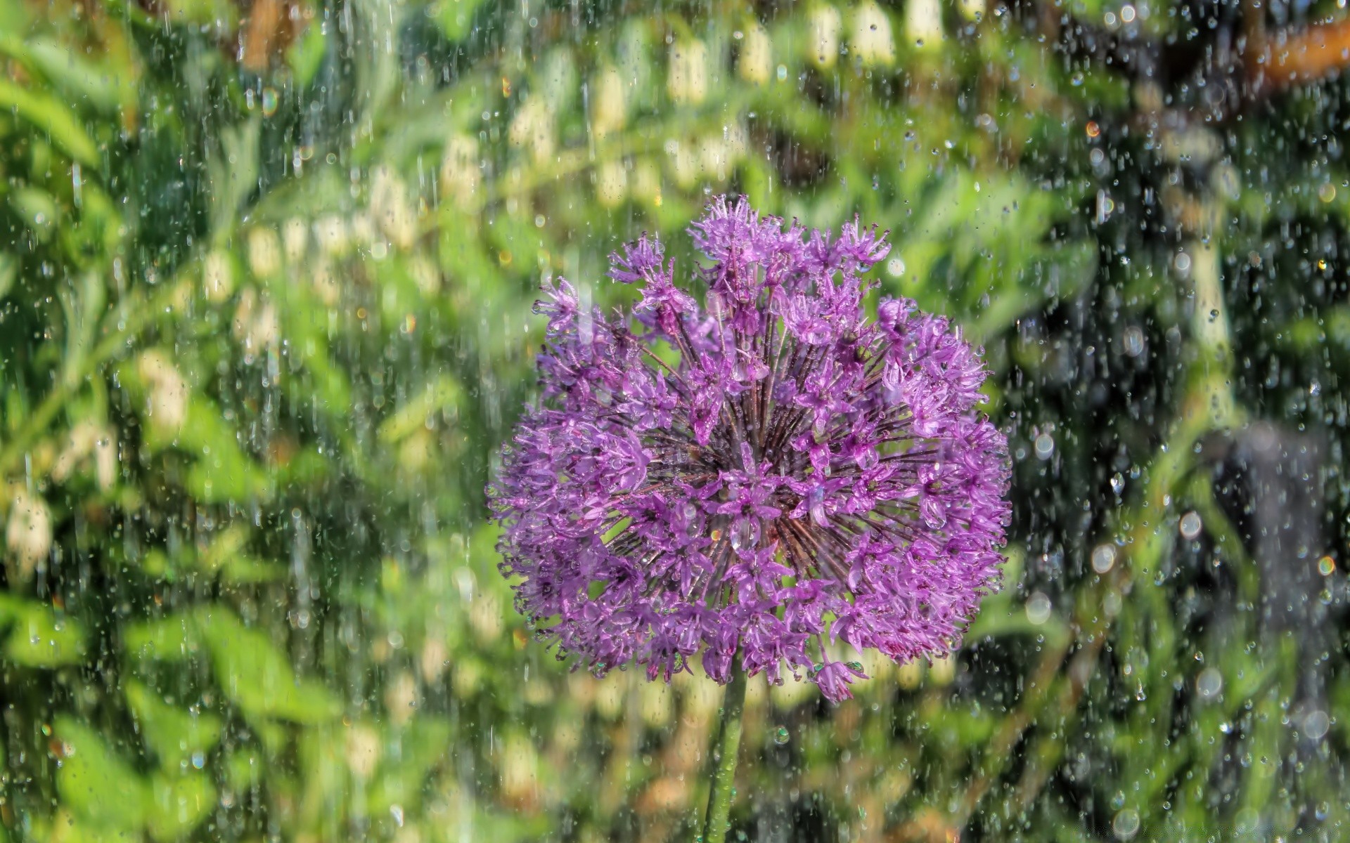 Fleur des champs sous les gouttes de pluie