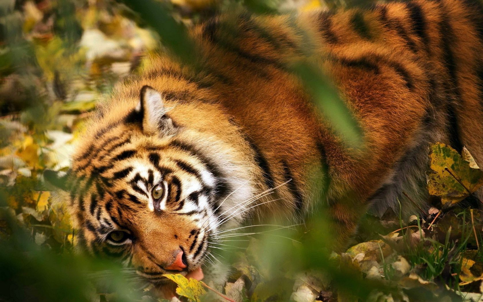 Beau tigre dans l'herbe d'automne