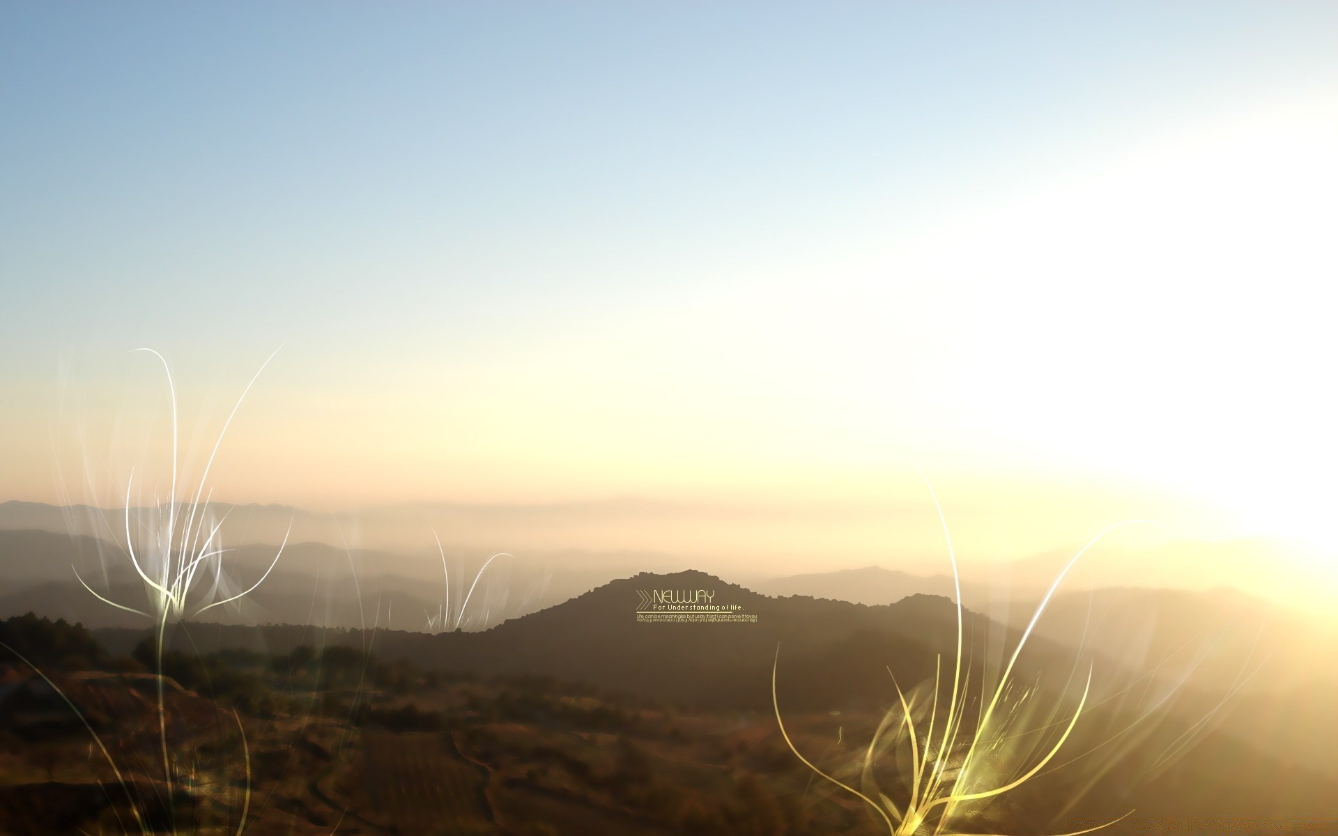 Brouillard sur les collines. Paysage avec des éléments graphiques