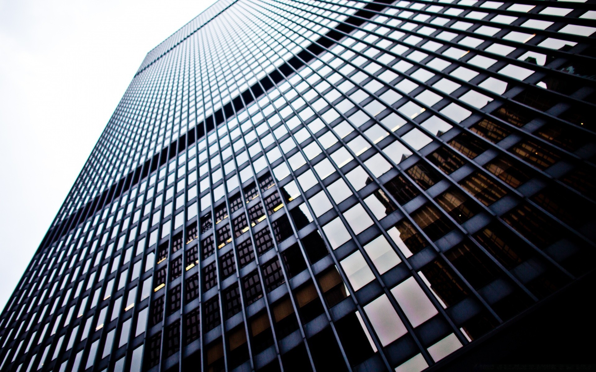 Piscine géante au milieu des gratte-ciel sur fond de ciel avec des nuages