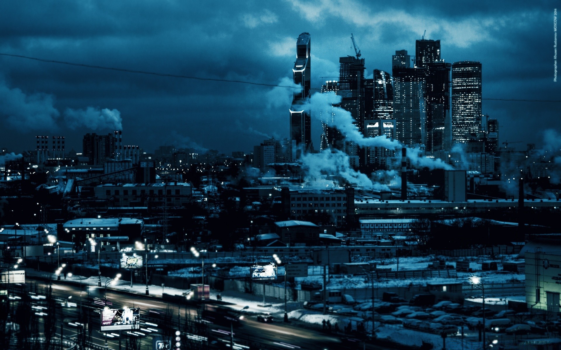 VILLE DE NUIT SUR FOND DE CIEL SOMBRE