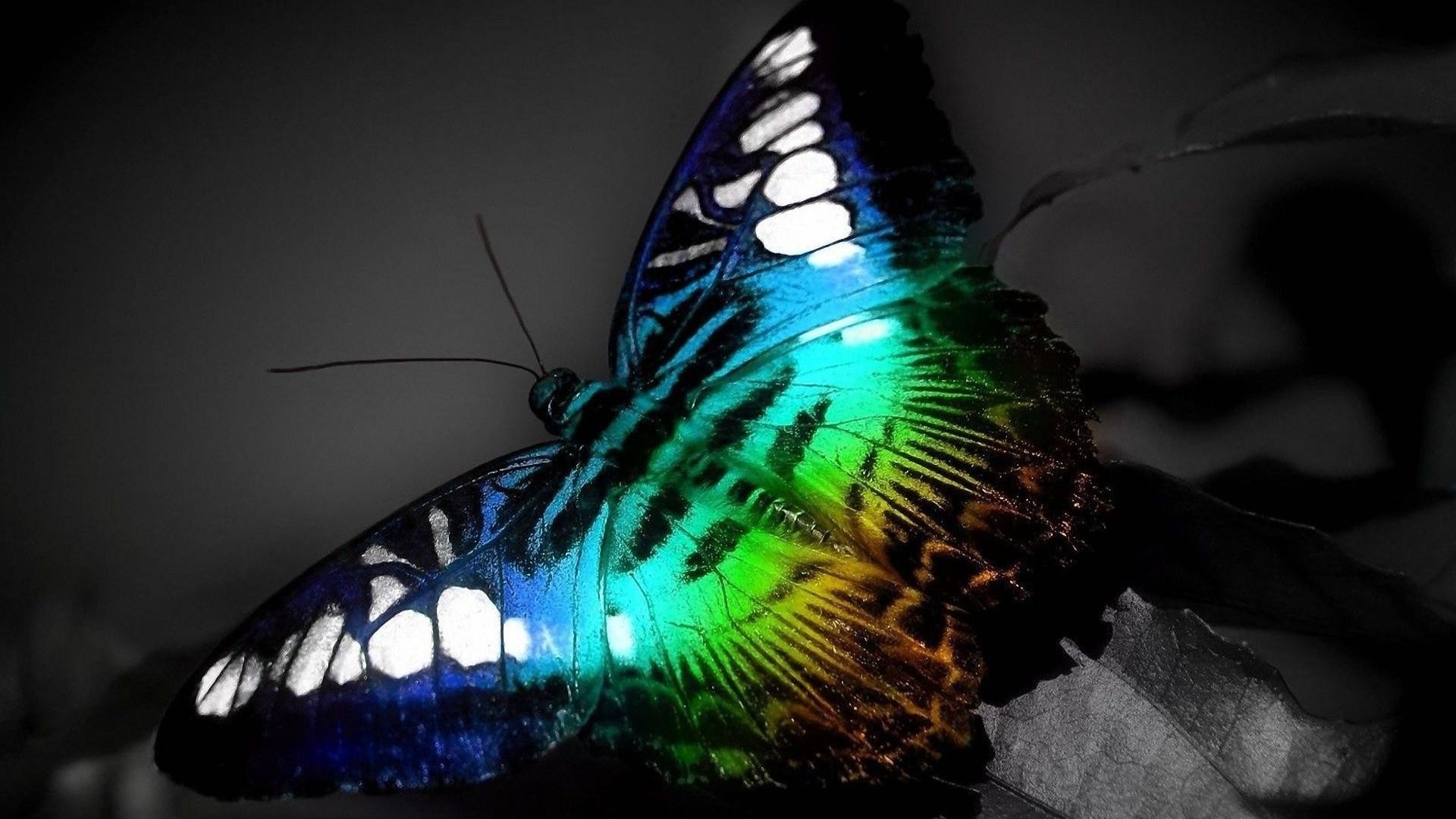 Beau papillon multicolore sur fond gris