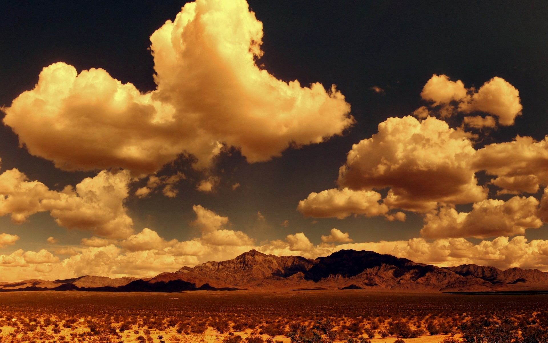 Paysage de montagne avec de gros nuages