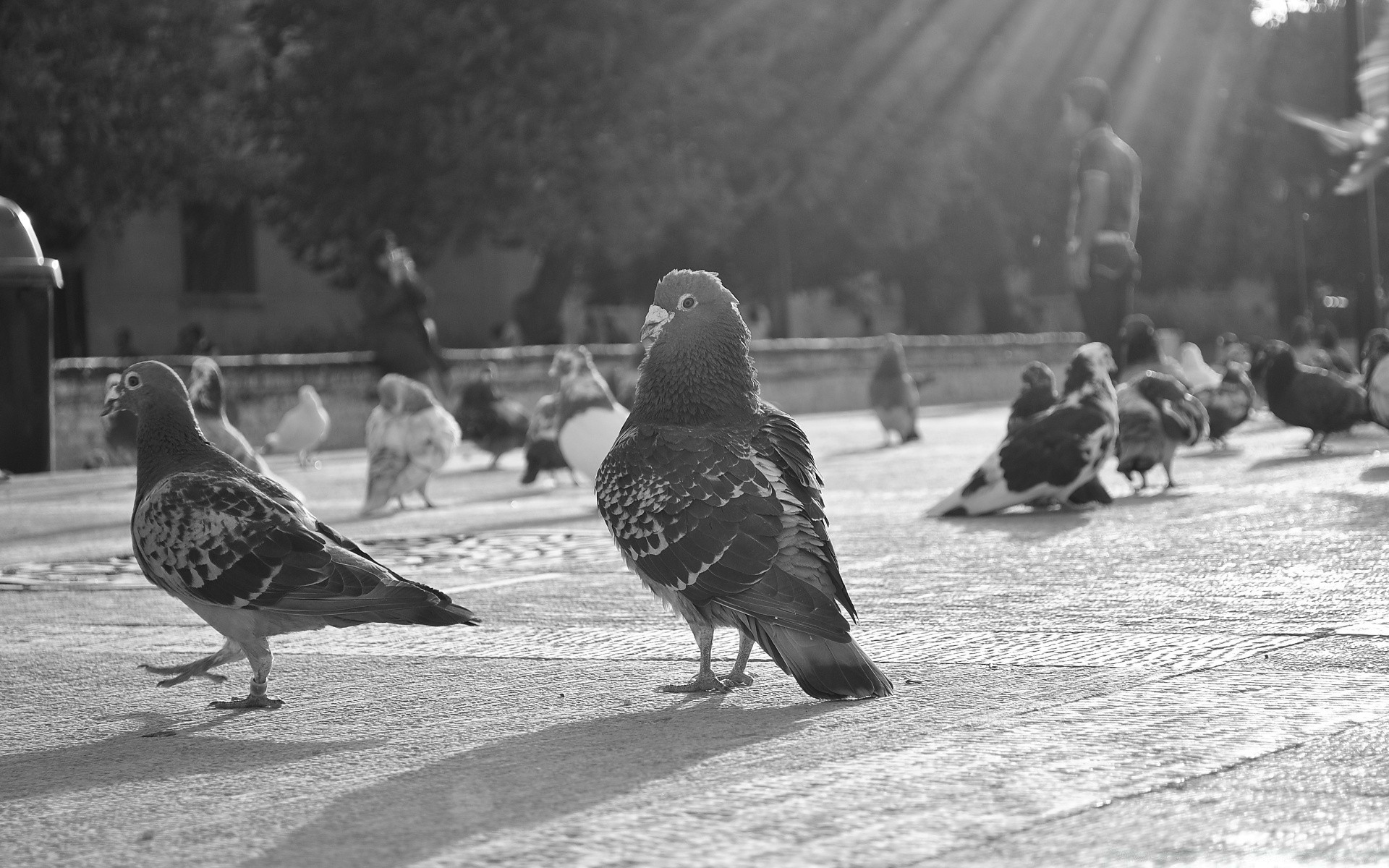 De nombreux oiseaux pigeons noir et blanc