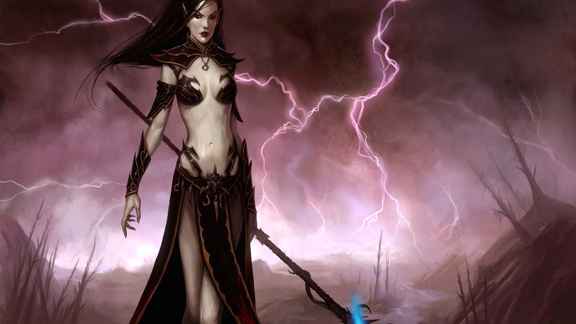 Vampire fille dans un orage violent