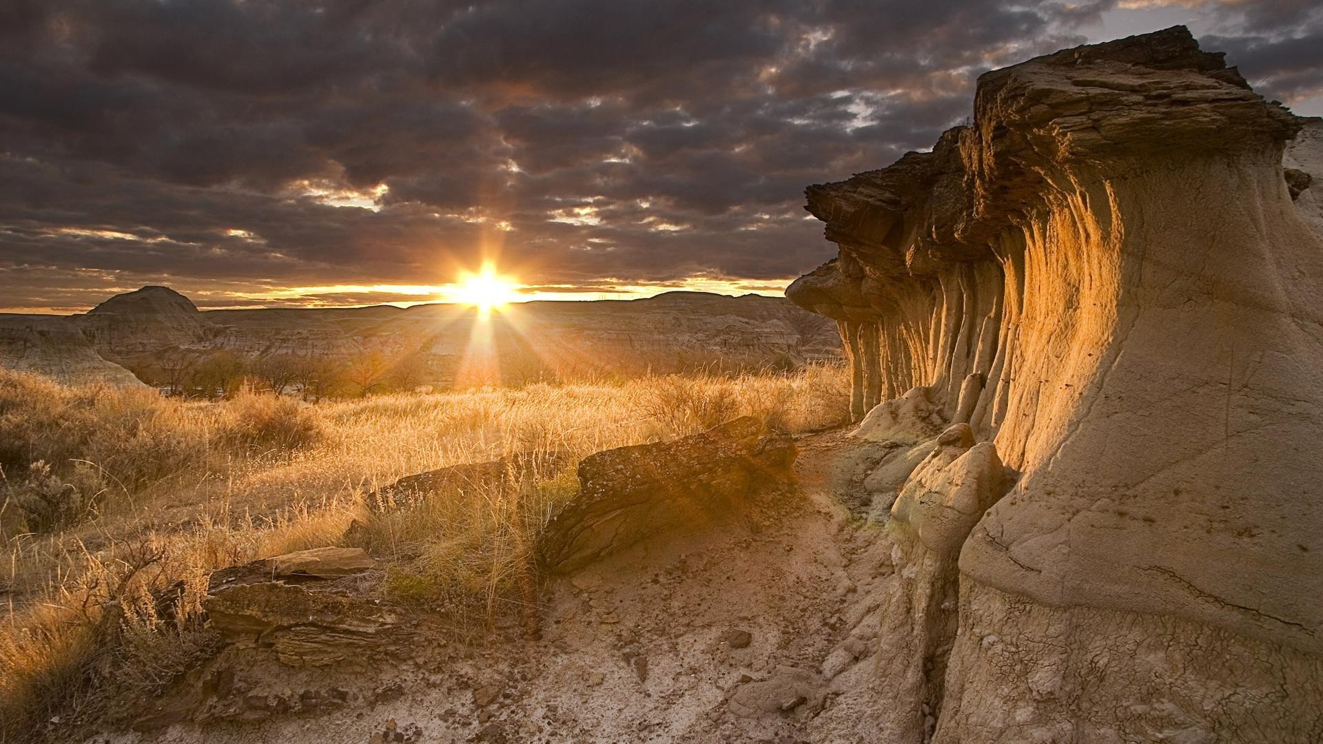 Haut-parleurs avec musique au coucher du soleil dans le désert
