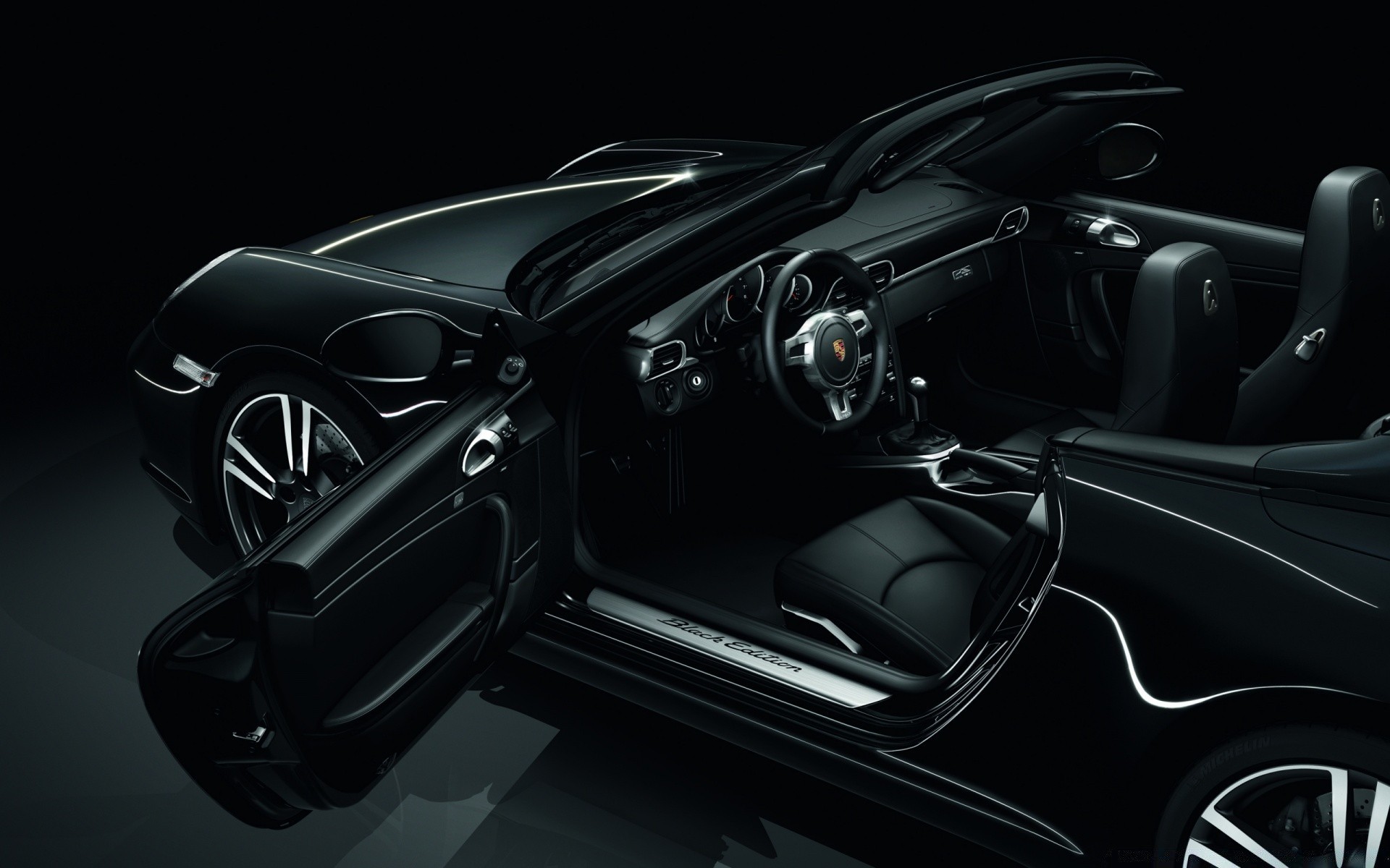 Voiture SUV noire sous l'Essieu avec roues avant pivotées