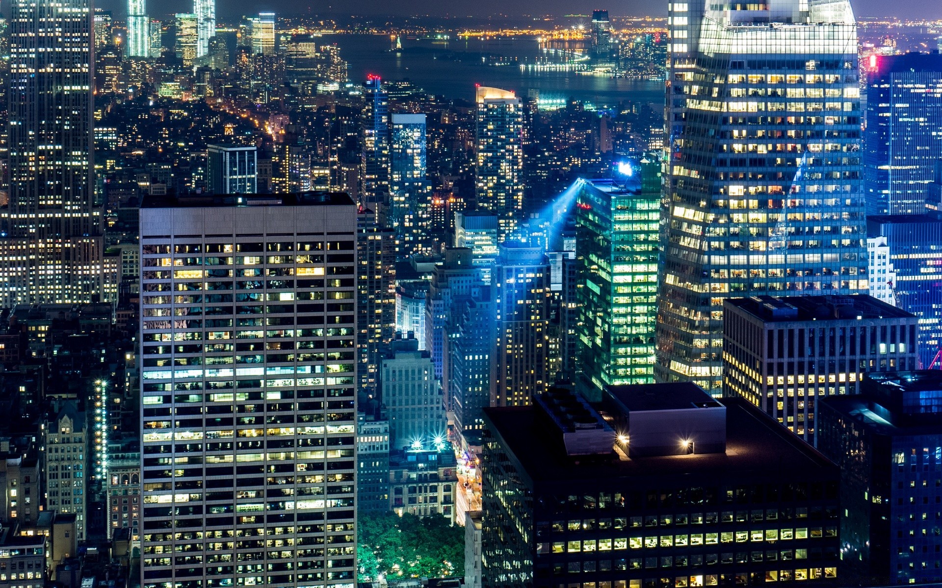 Les gratte-ciel brillent la nuit avec leur éclairage