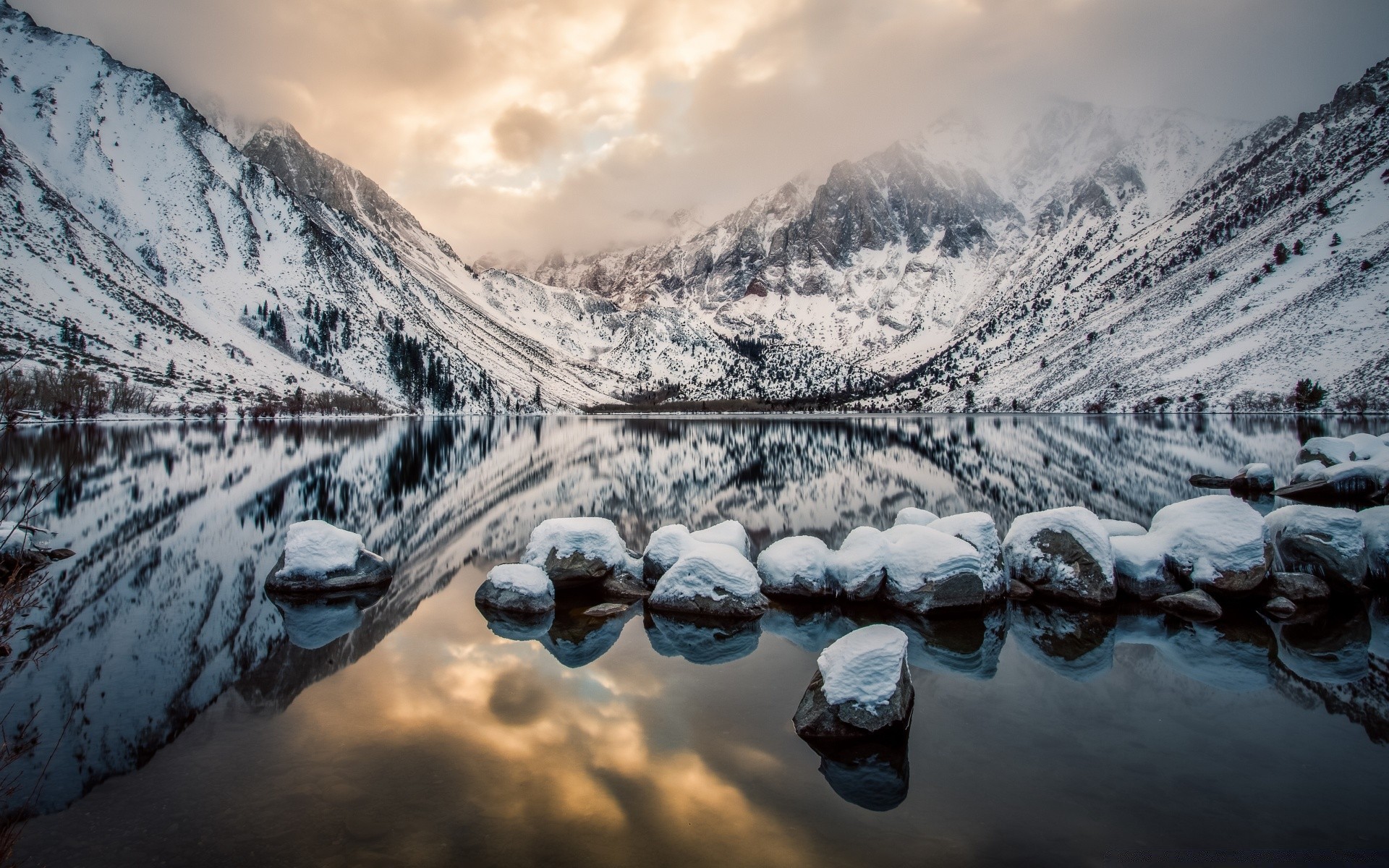 Paysage d'hiver du lac et des montagnes