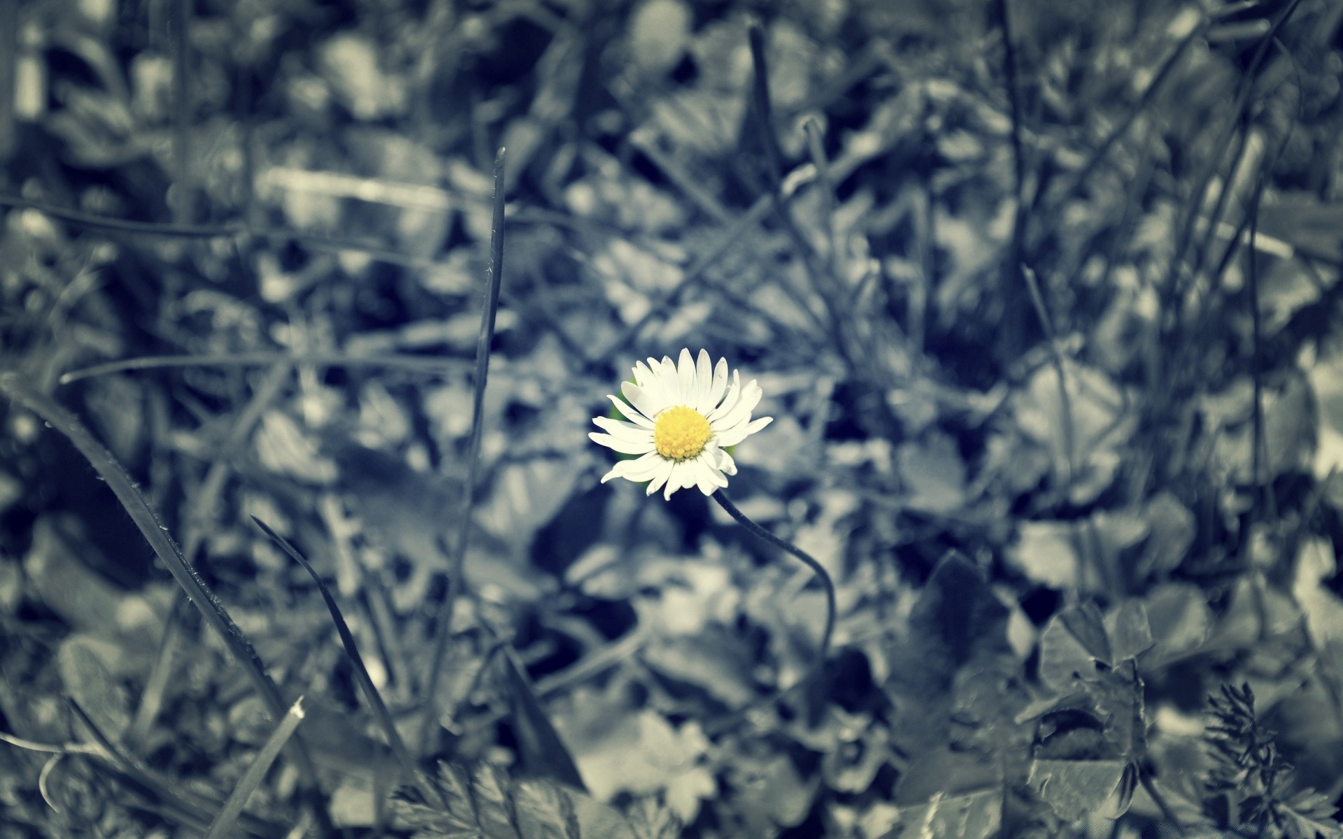 Camomille solitaire dans l'herbe grise