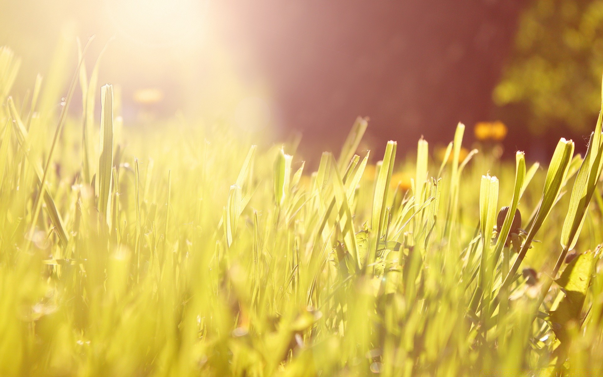 Les reflets du soleil sur l'herbe