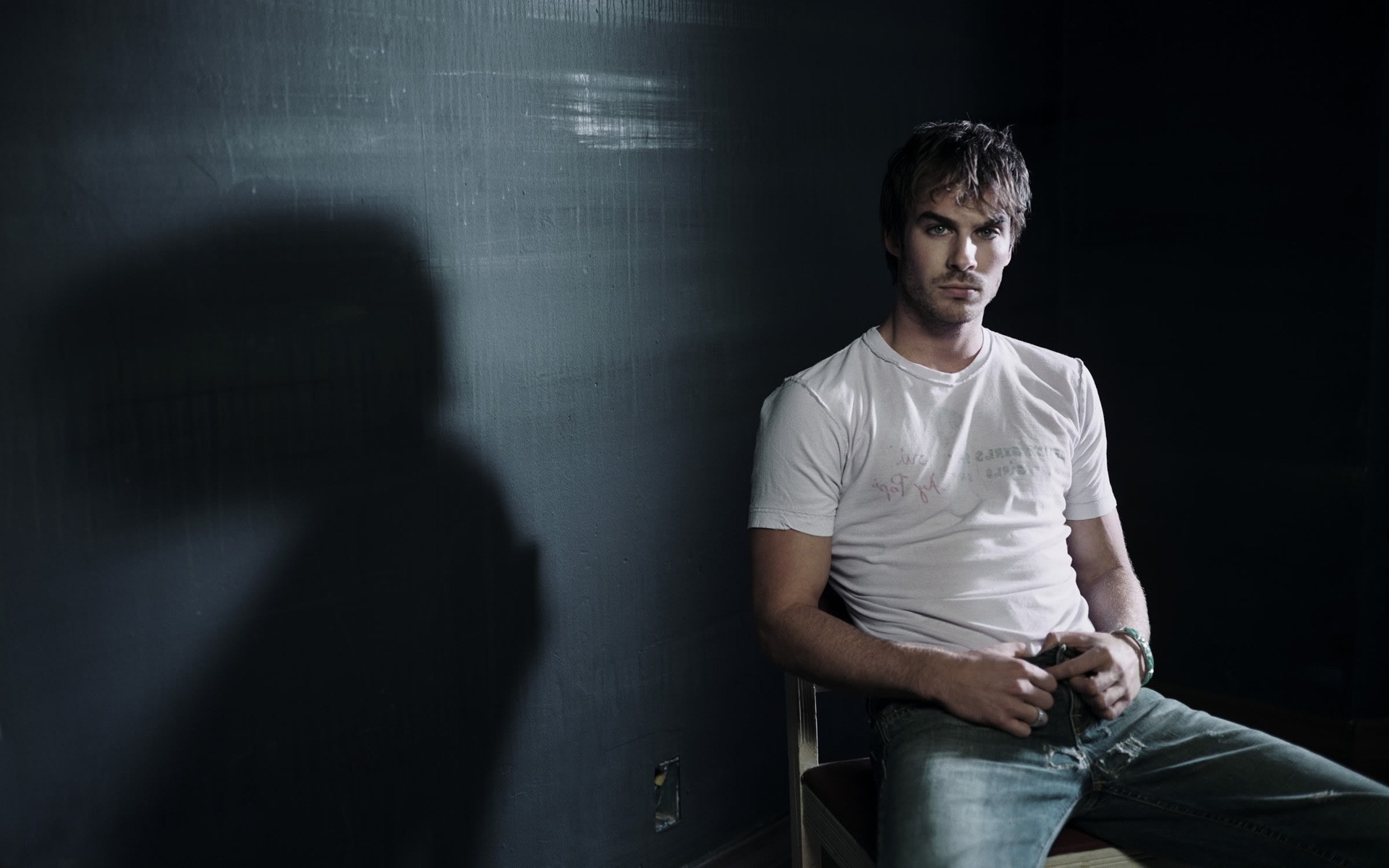 Portrait d'un acteur assis sur une chaise
