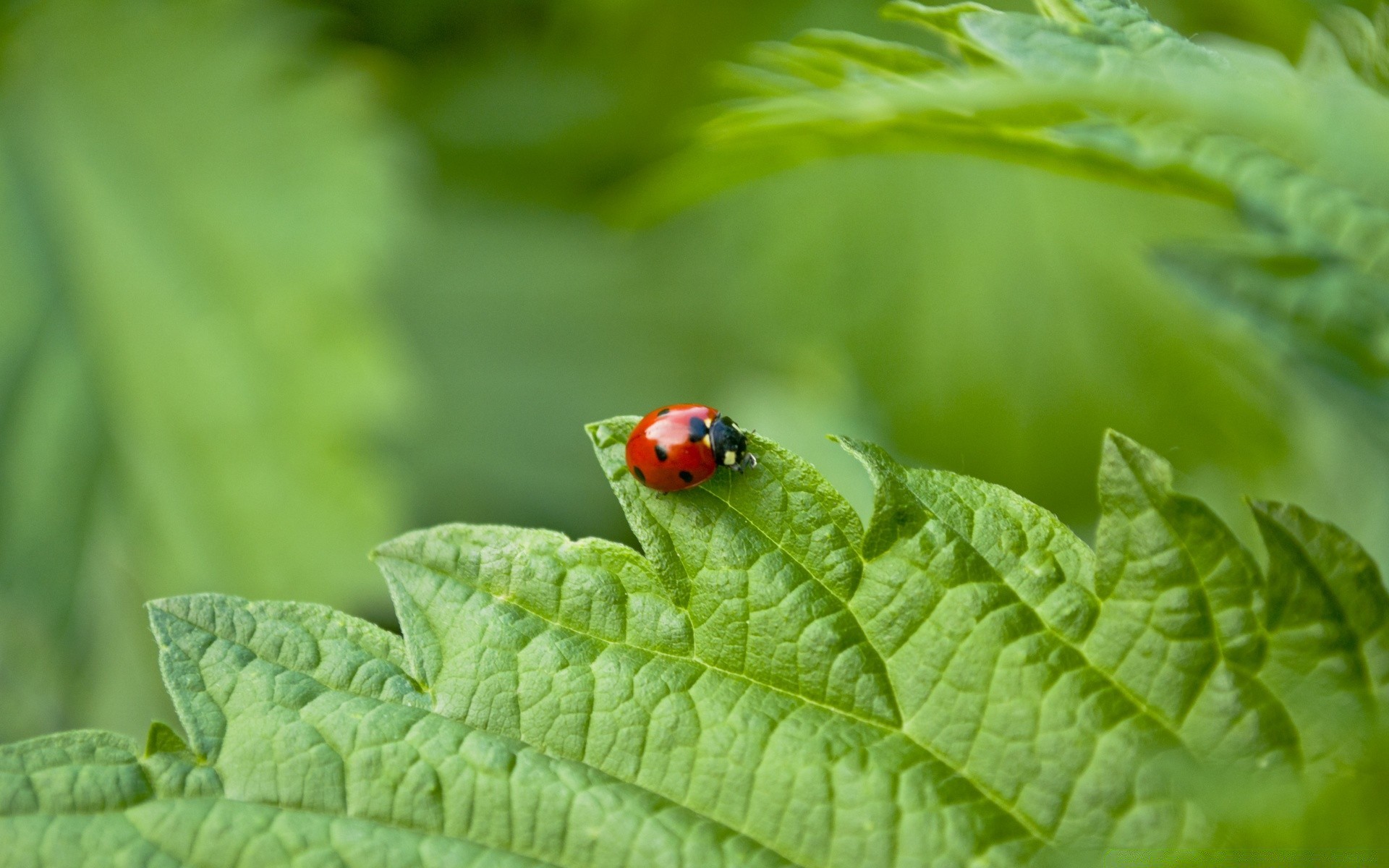 Coccinelle rouge vif sur une feuille verte