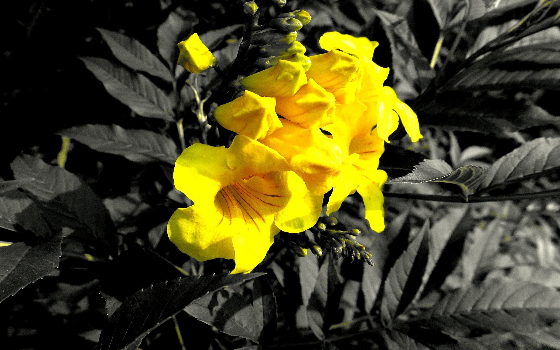 Fleurs jaune vif sur fond Monochrome