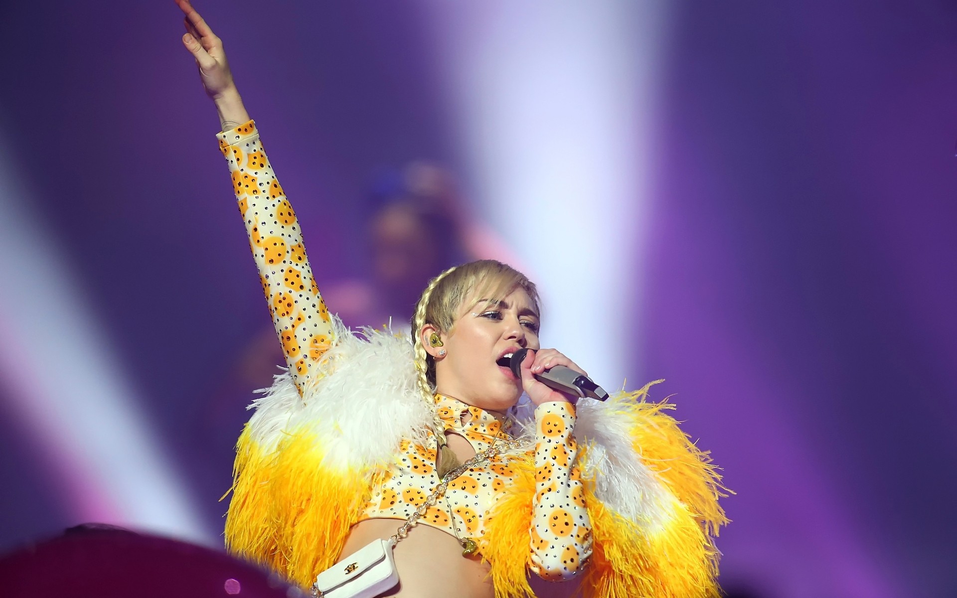 Une jeune chanteuse en tenue extravagante avec fausse fourrure interprète une chanson sur la scène du Festival de musique