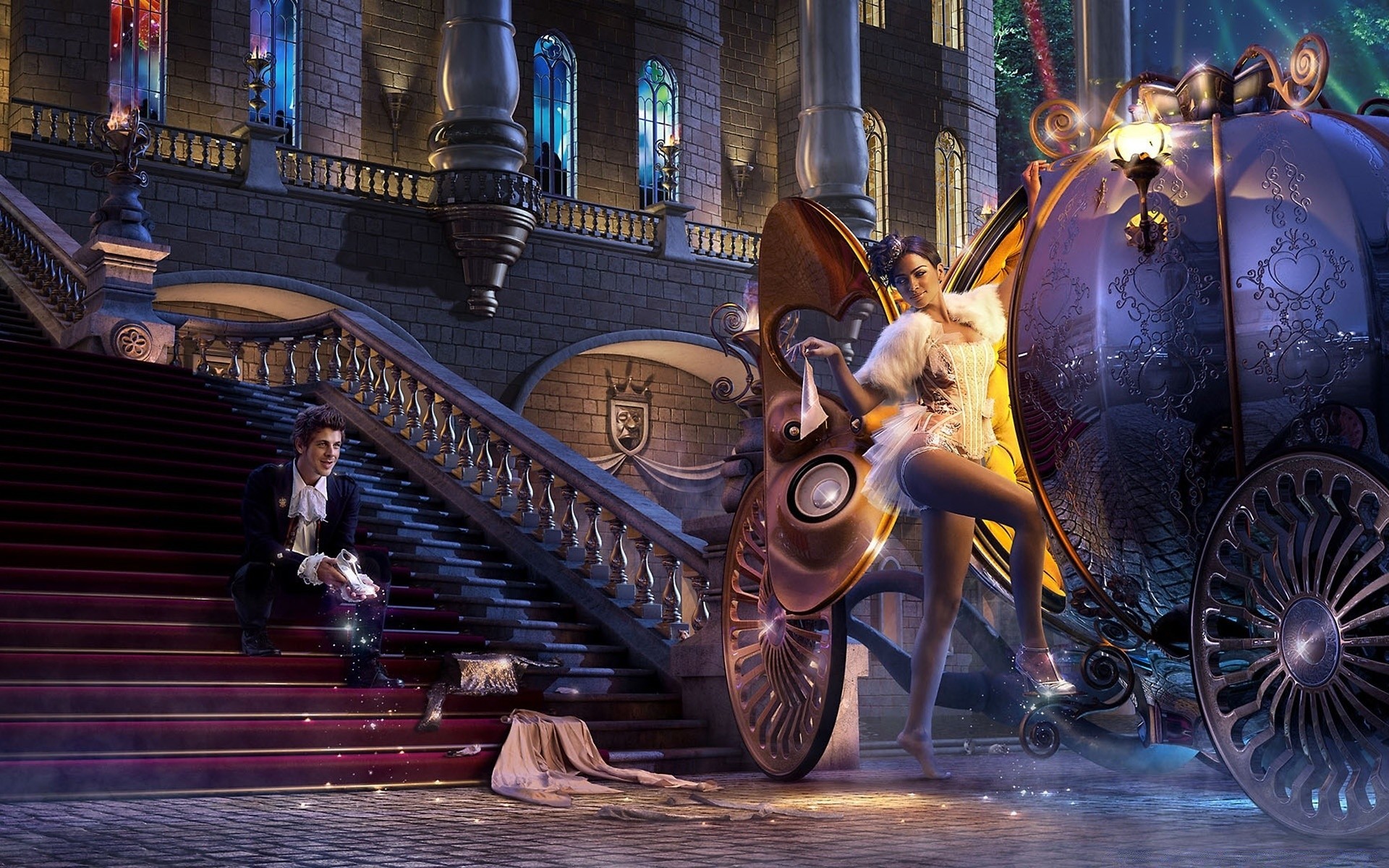 Jeune fille entre dans le carrosse dans la main tenant une chaussureJeune fille entre dans le carrosse dans la main tenant une chaussure