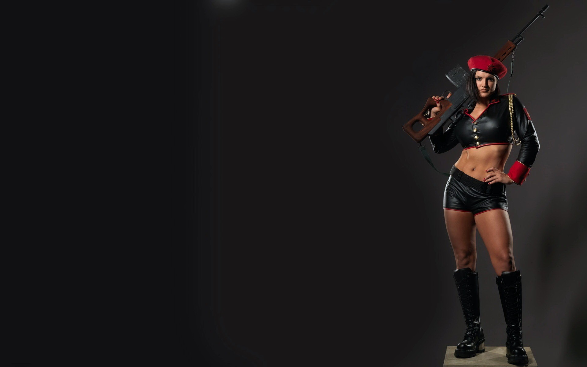Fille de tireur avec une mitrailleuse et dans un béret
