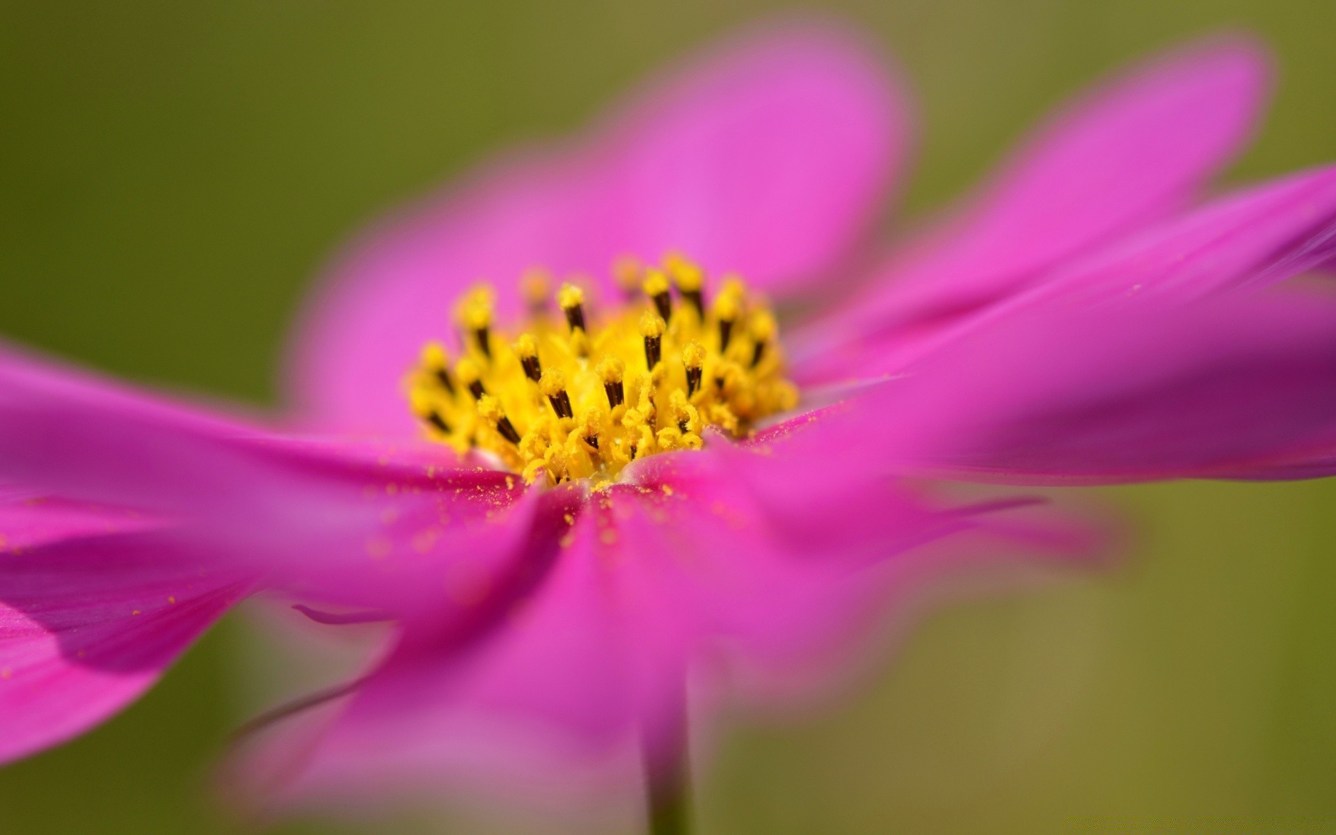 Centre jaune de cynia framboise sur fond vert flou
