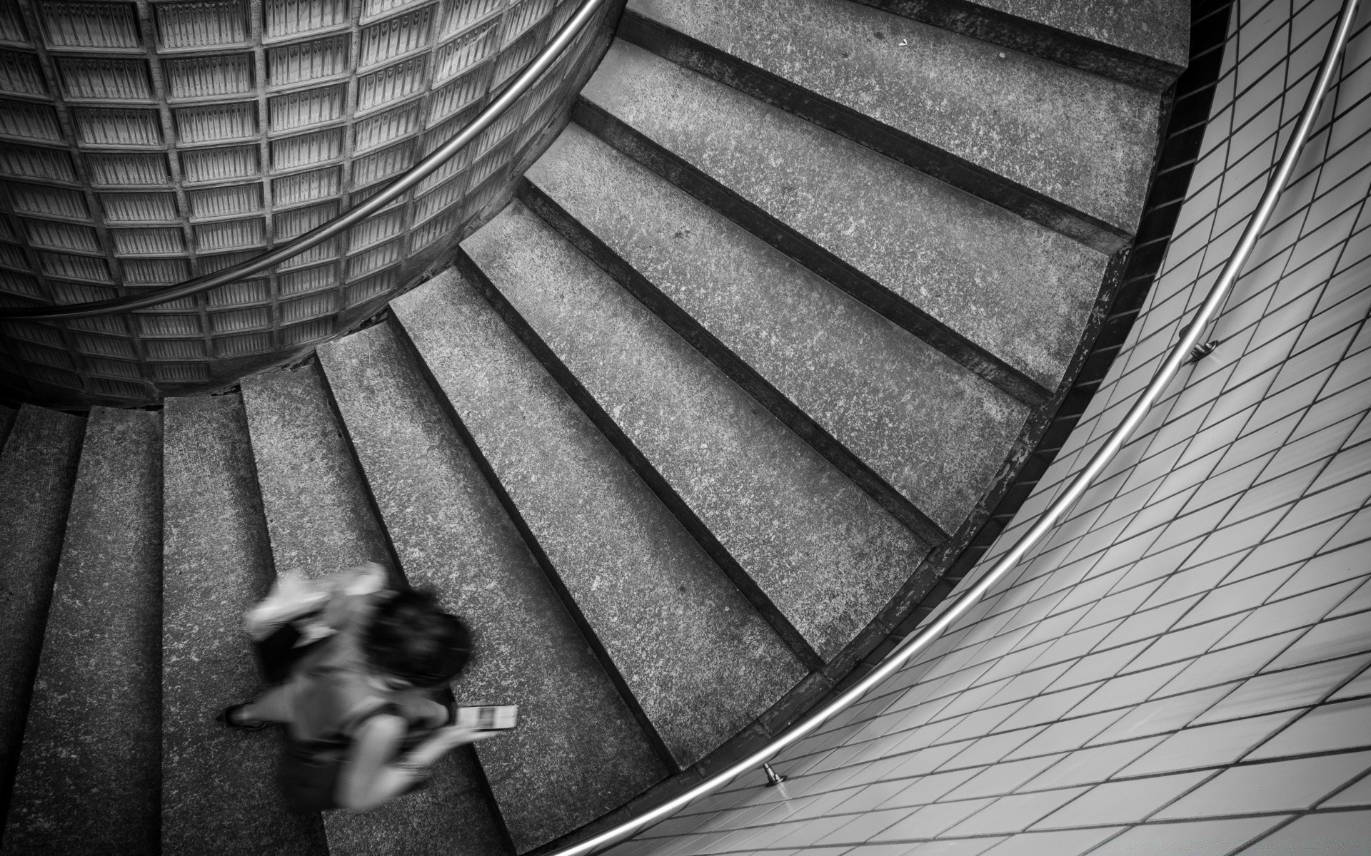 Fille en cours d'exécution sur l'escalier en colimaçon