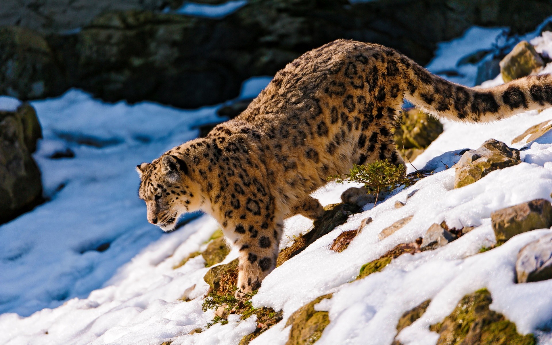 Le léopard descend pour la proie des montagnes