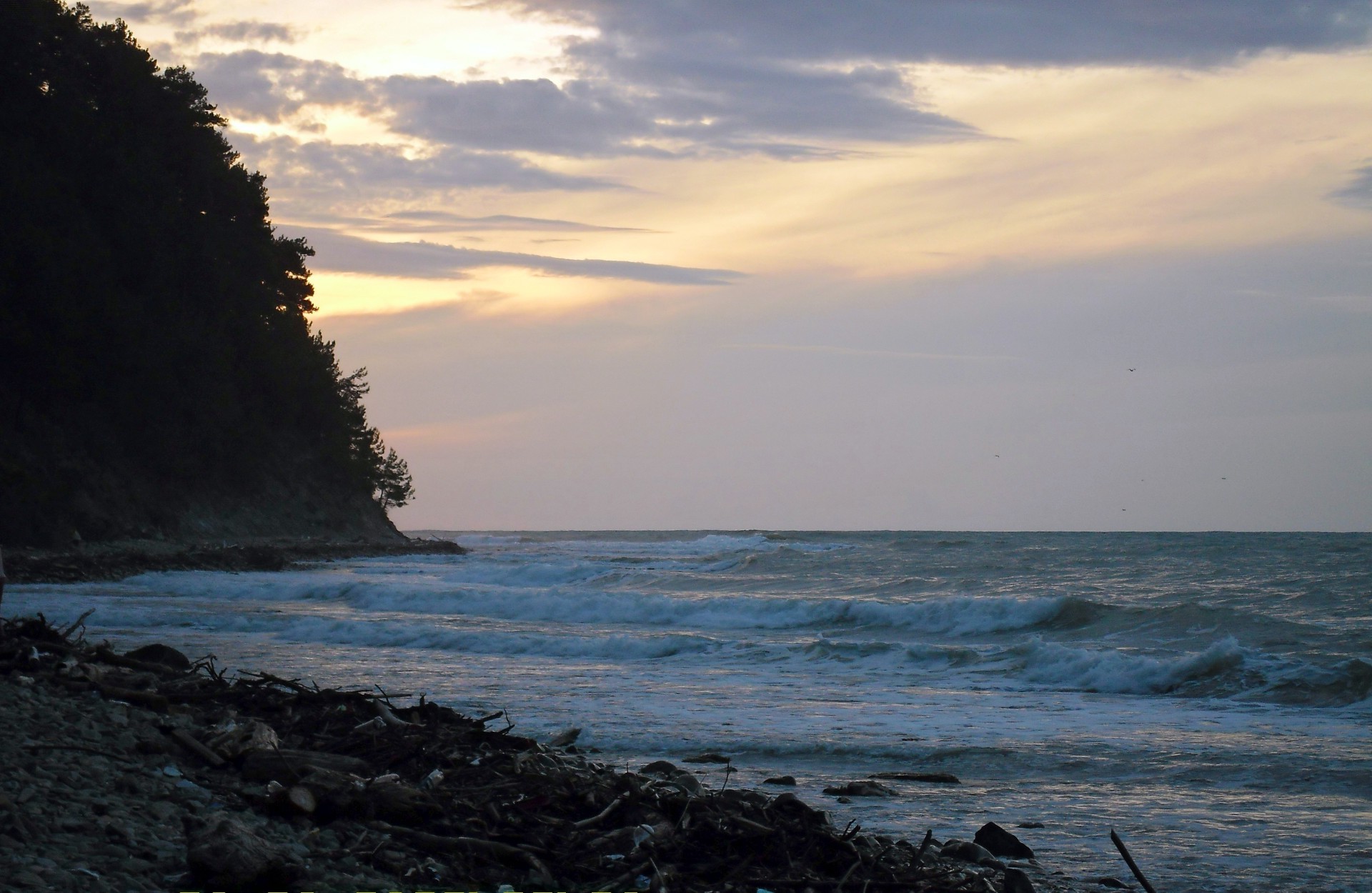Le coucher de soleil sur la côte de la mer est incroyable