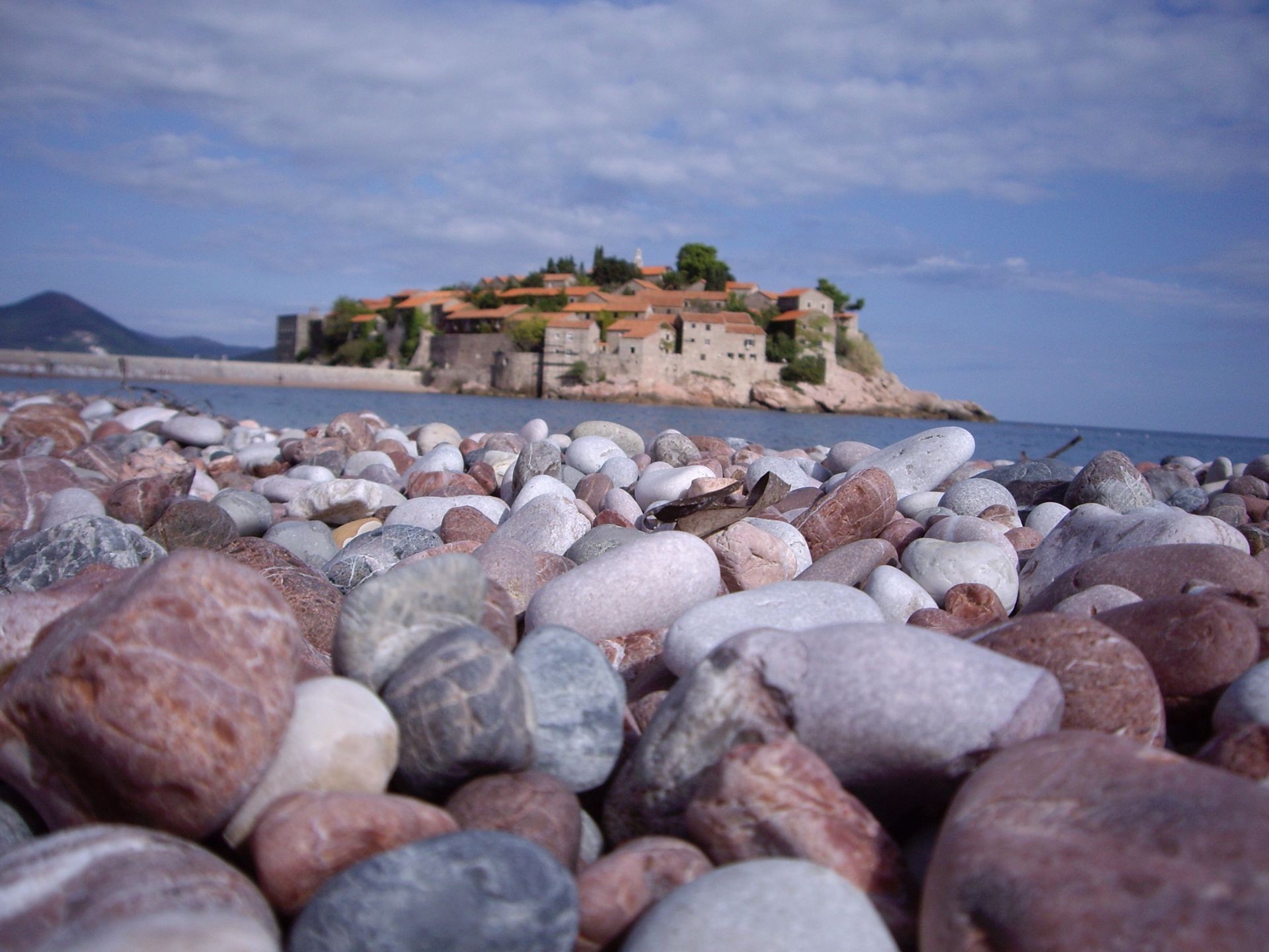 Pierres sur la plage de la mer par temps nuageux
