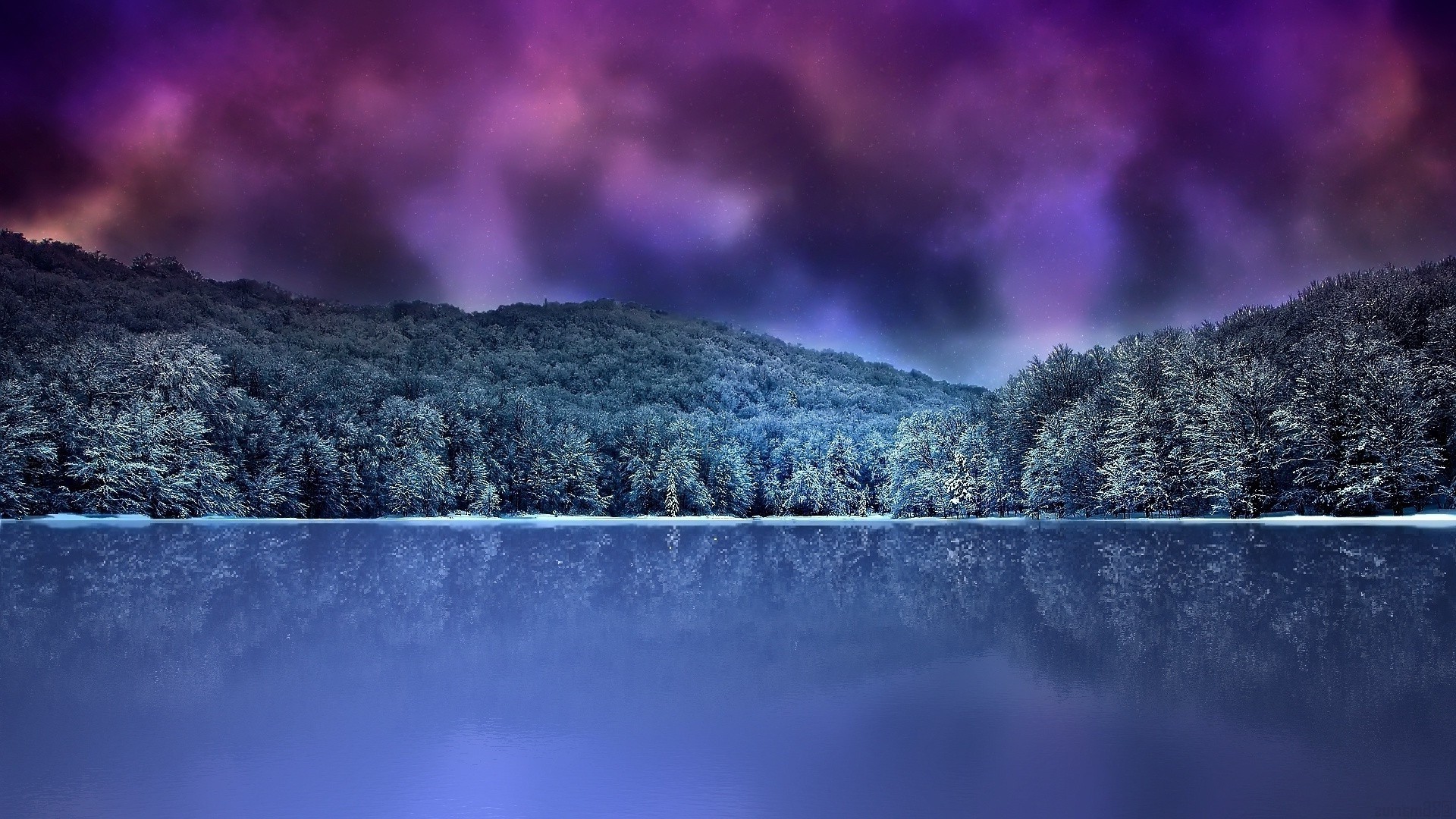 Forêt d'hiver au bord du lac