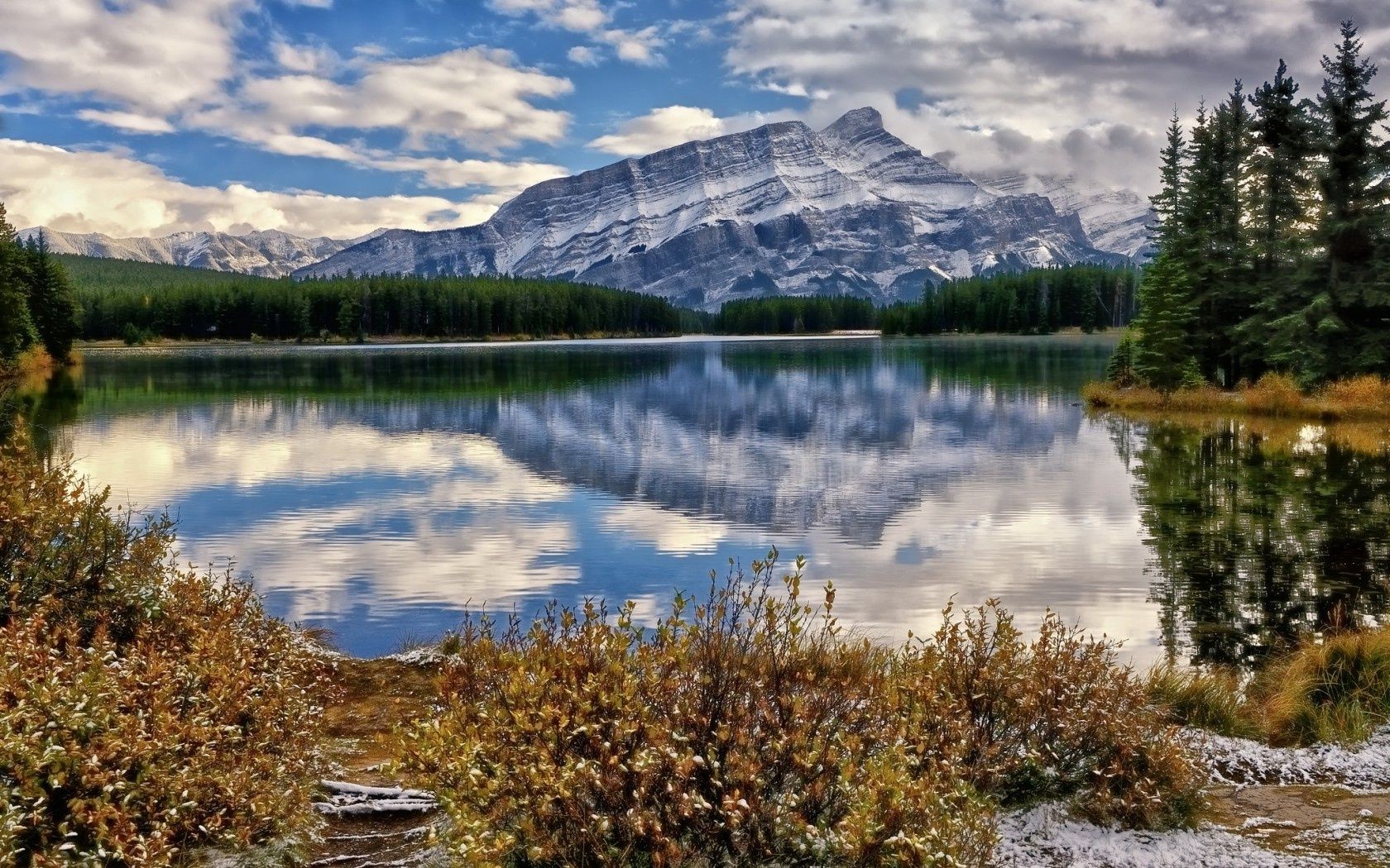 Paysage peint. Bateau dans le lac et chute des feuilles d'automne
