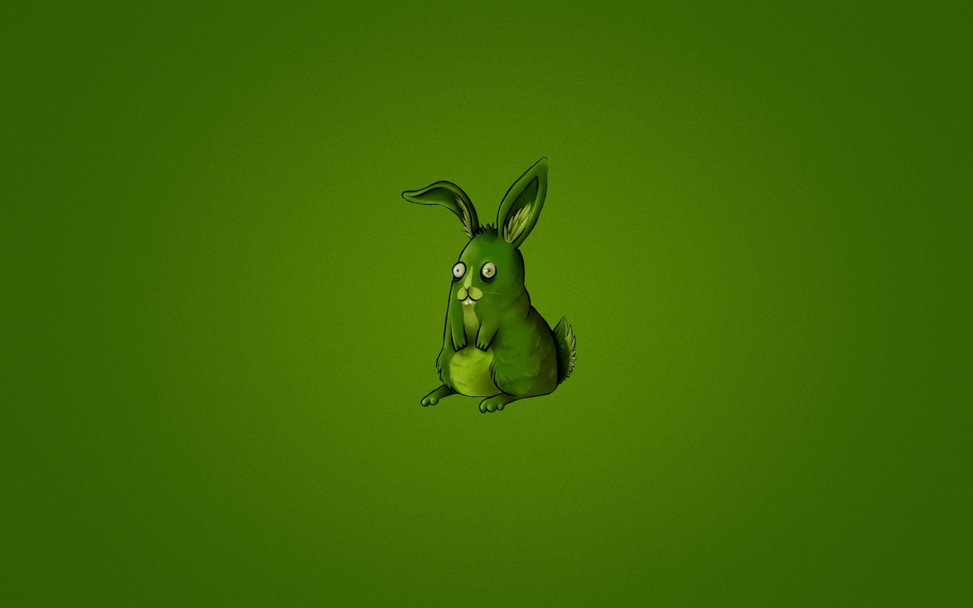 Lapin vert caricatural sur fond vert