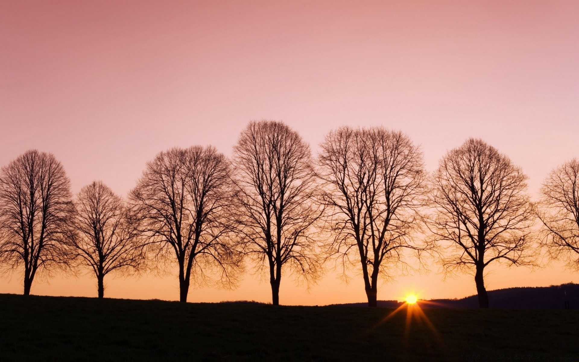 Beau coucher de soleil sur le ciel rose parmi les arbresBeau coucher de soleil sur le ciel rose parmi les arbres