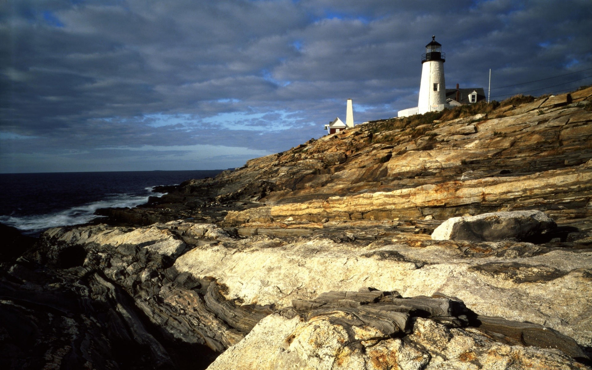Phare sur la montagne et le ciel nuageux au-dessus de la mer Phare sur la montagne et le ciel nuageux au-dessus de la mer