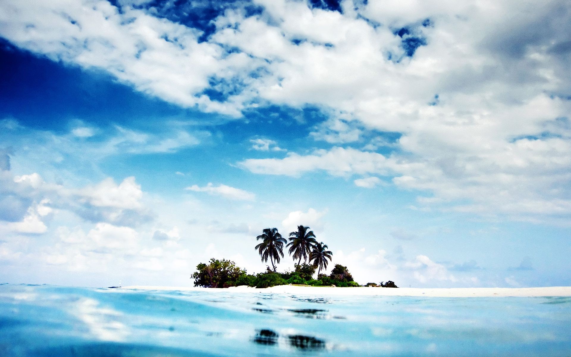 Île avec palmiers dans l'océan et le ciel bleu