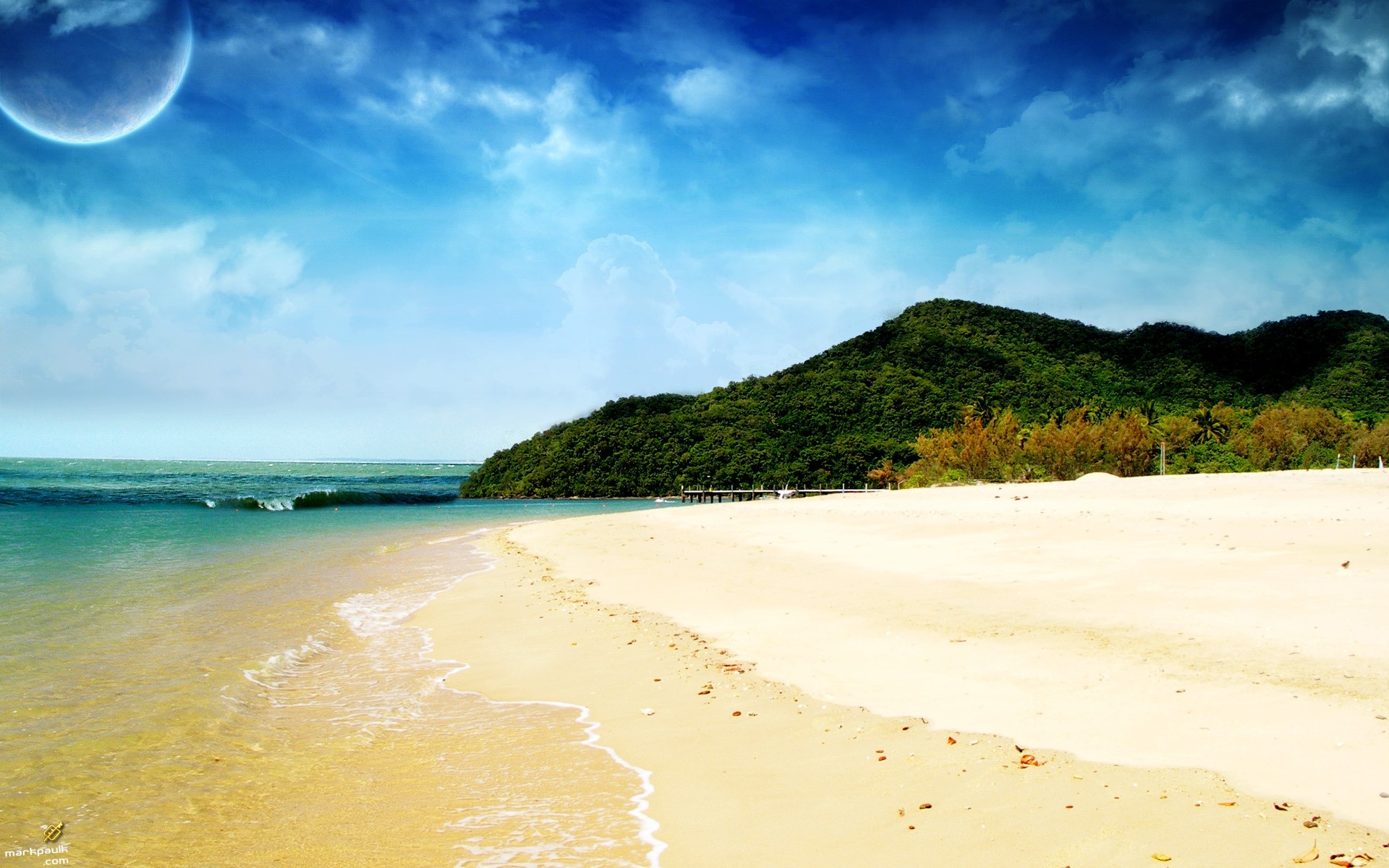 Côte d'Azur avec l'eau bleue et le sable blanc