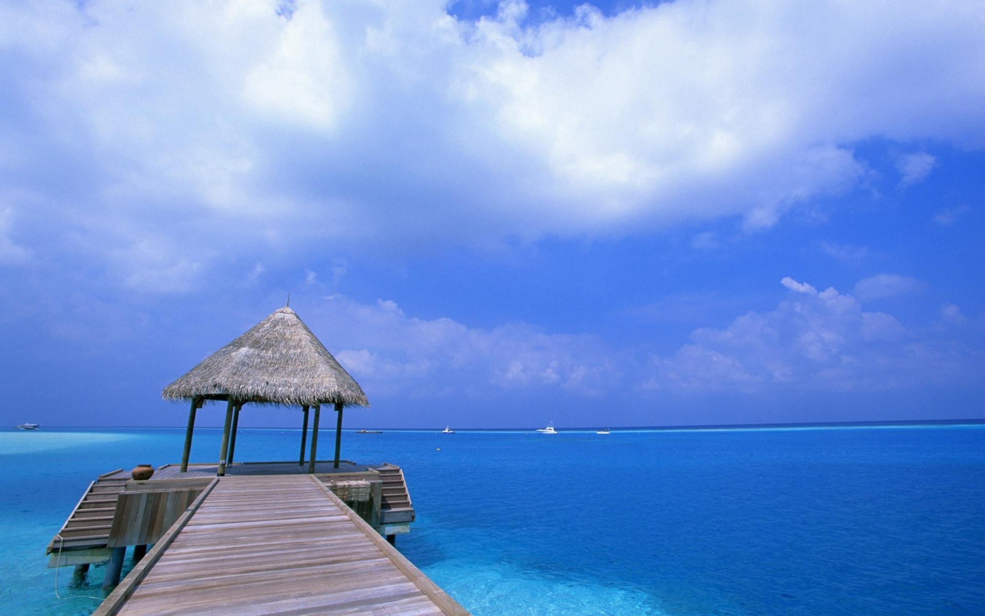 Palmiers sur le pont menant à la mer