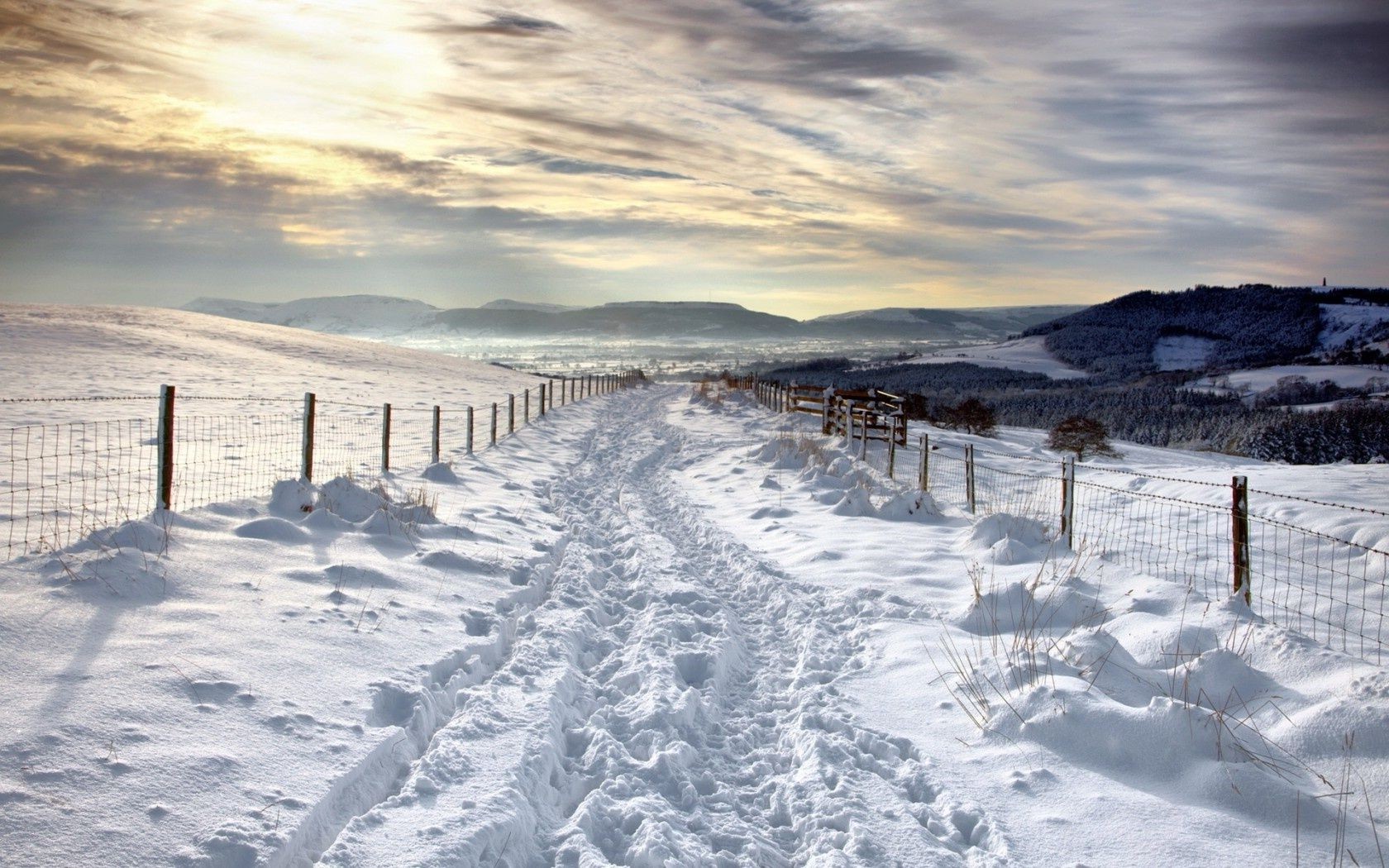 Paysage de conifères dont les racines sont parsemées de feuilles mortes