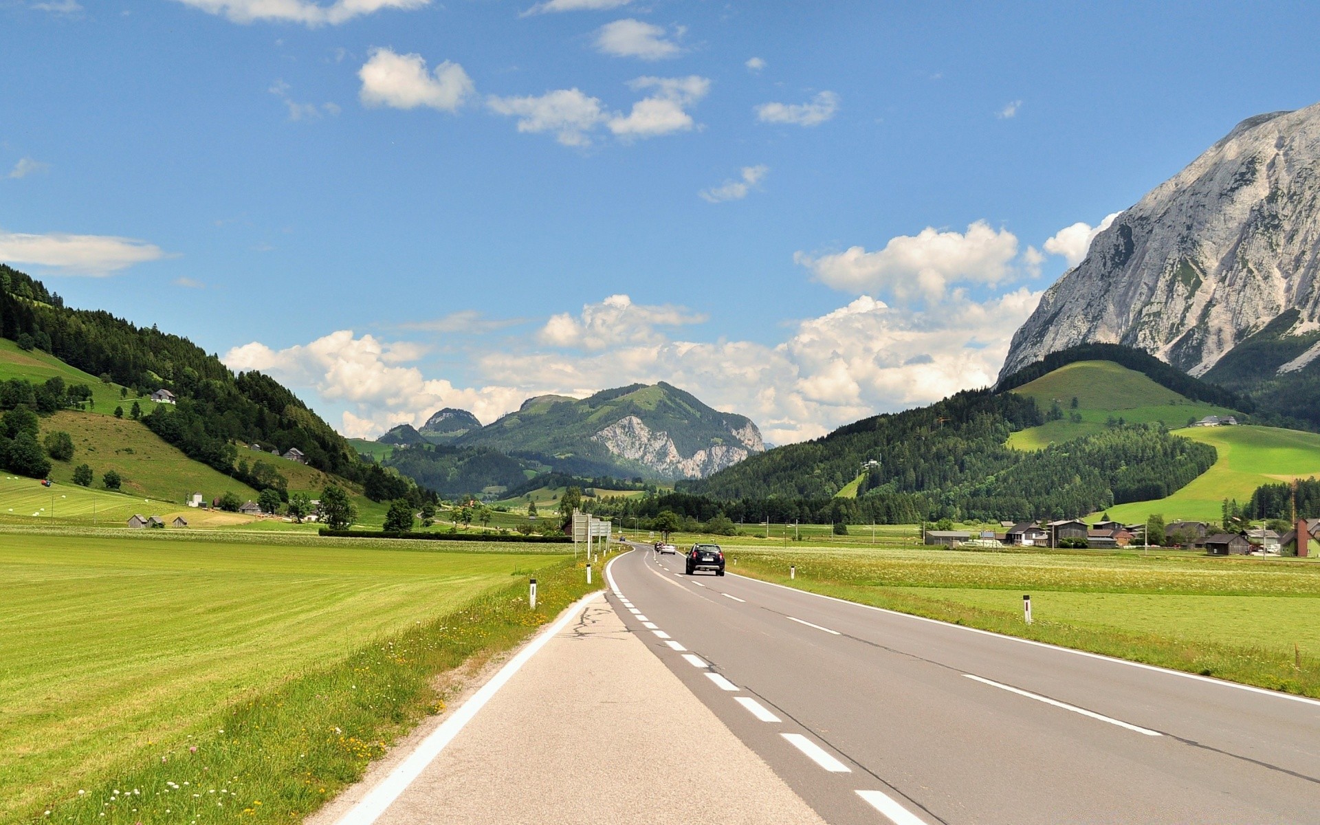 Paysage de route d'été dans les montagnes