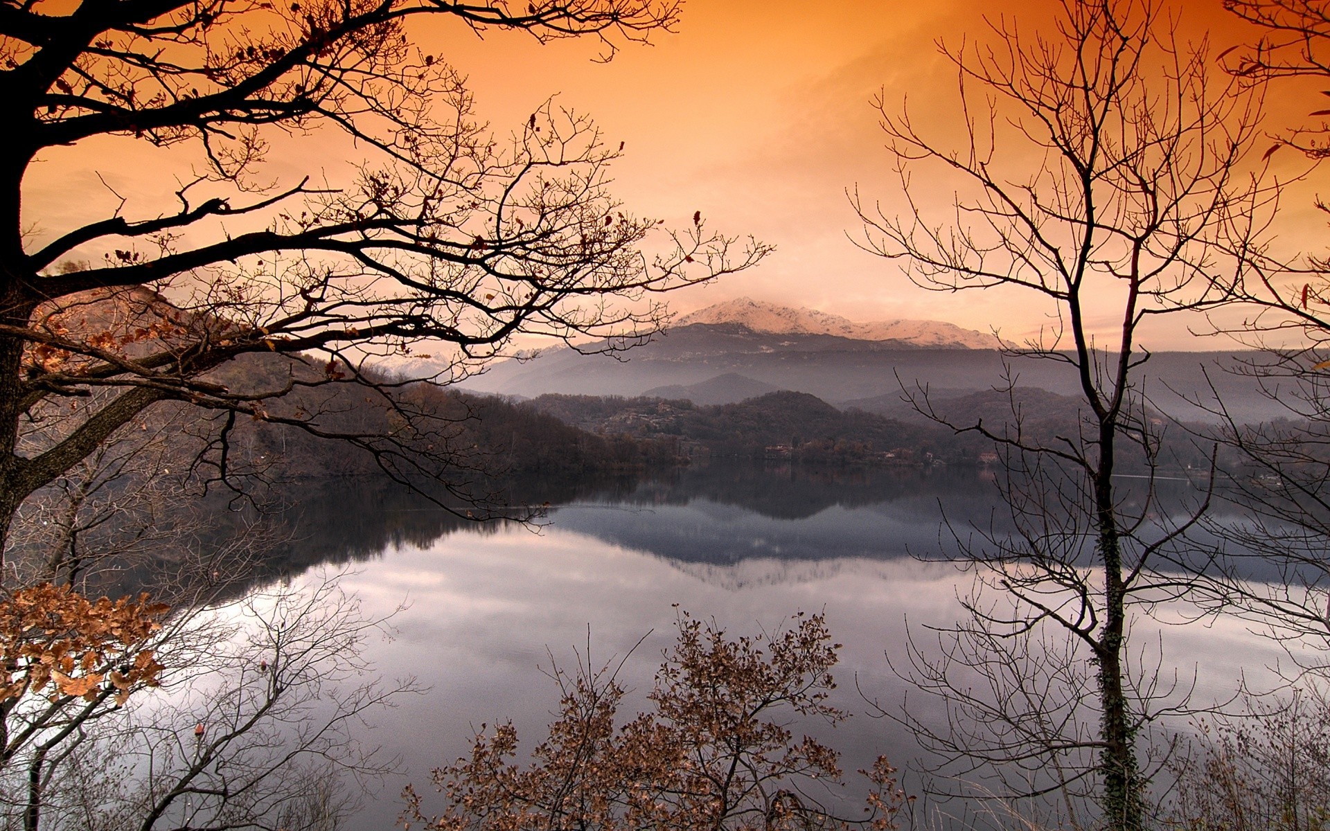 Forêt à la fin de l'automne pendant l'aube dans les montagnes