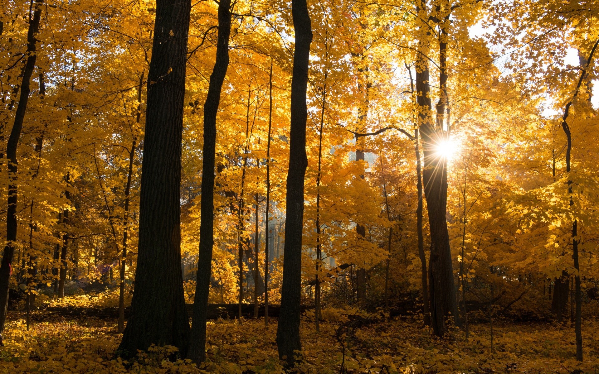 Parc à l'automne. Les feuilles jaunes s'endormaient sur toute la terre