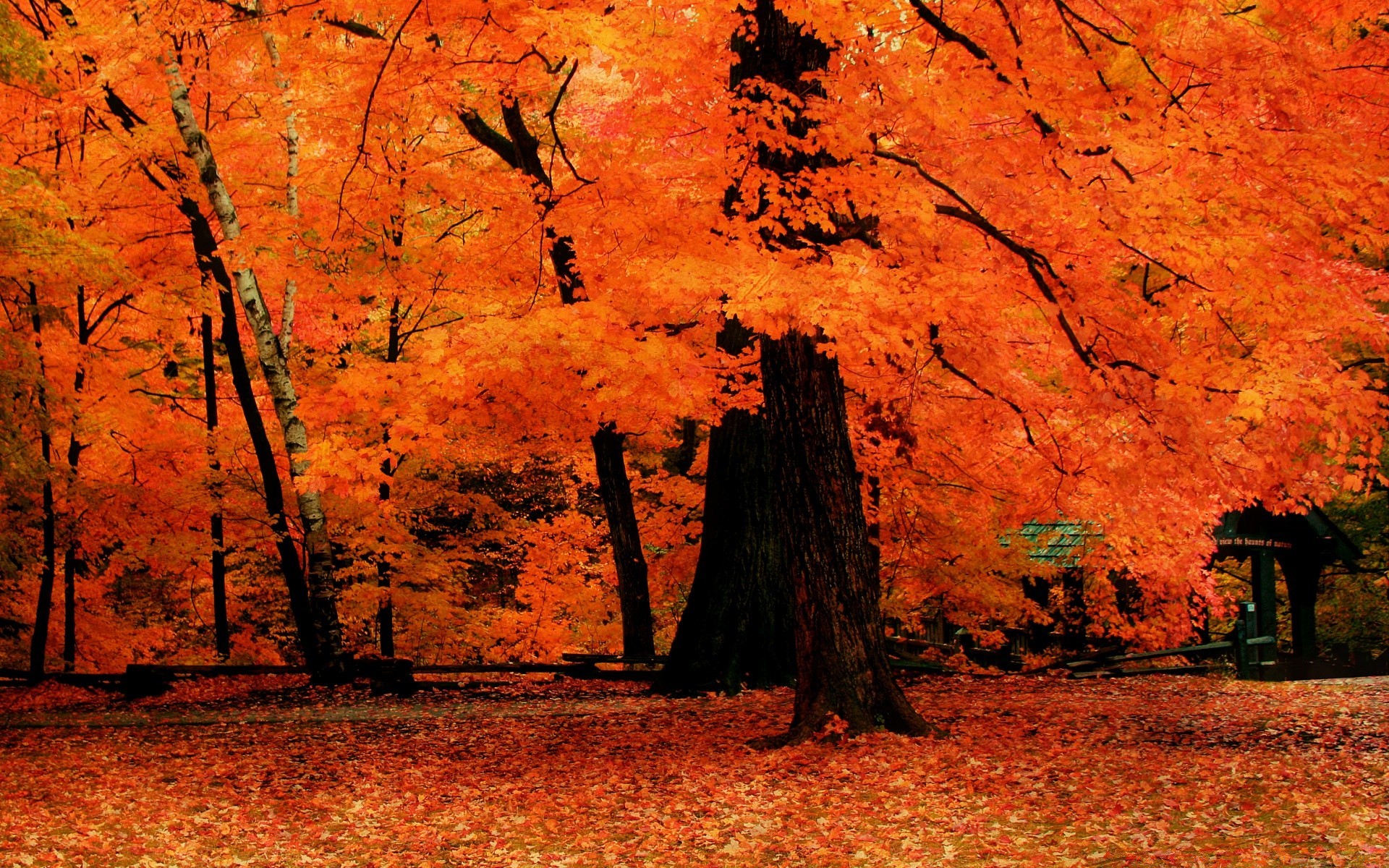 Arbre d'automne dans les feuilles rouges