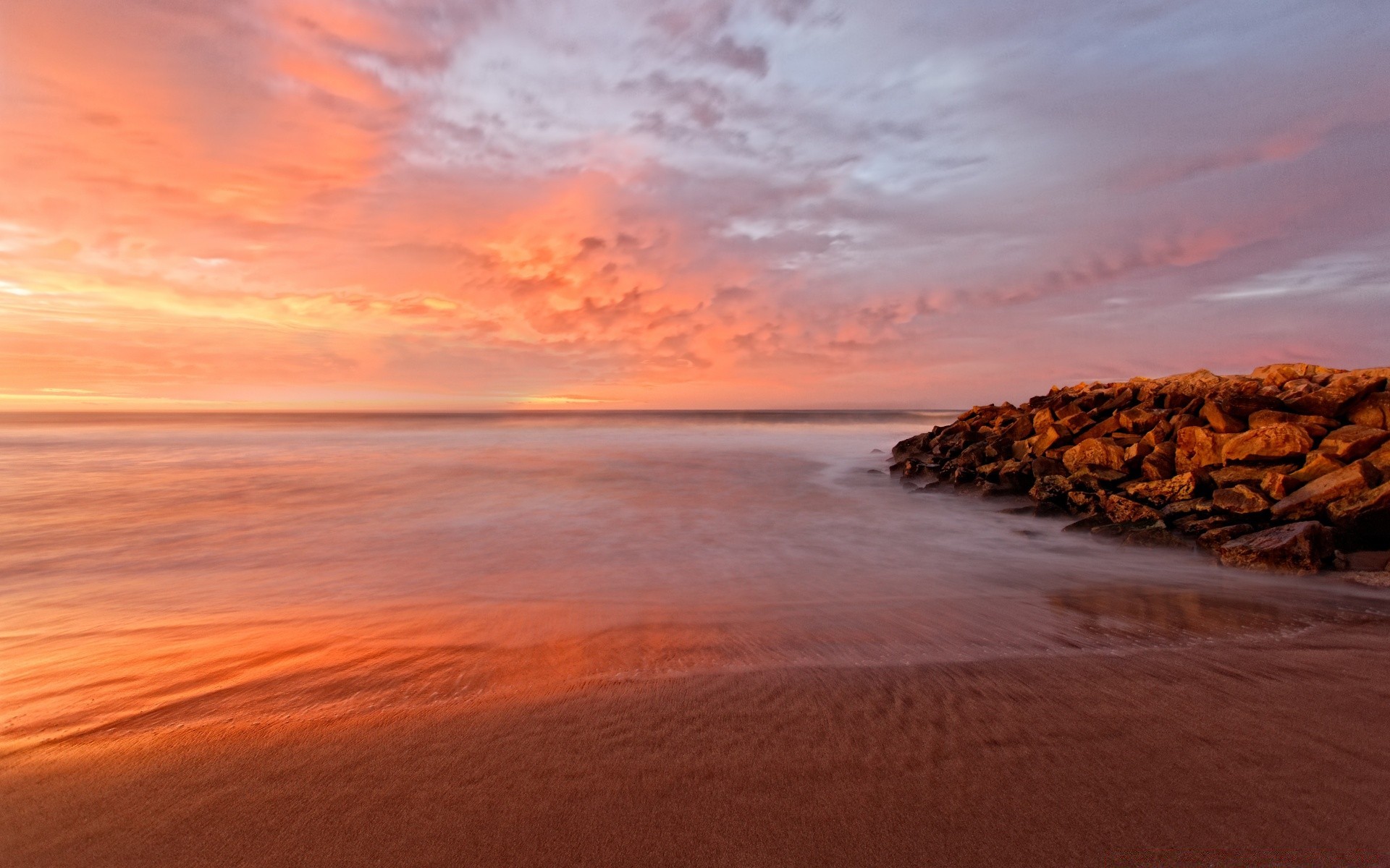 Ciel orange-bleu dans les rayons du coucher du soleil