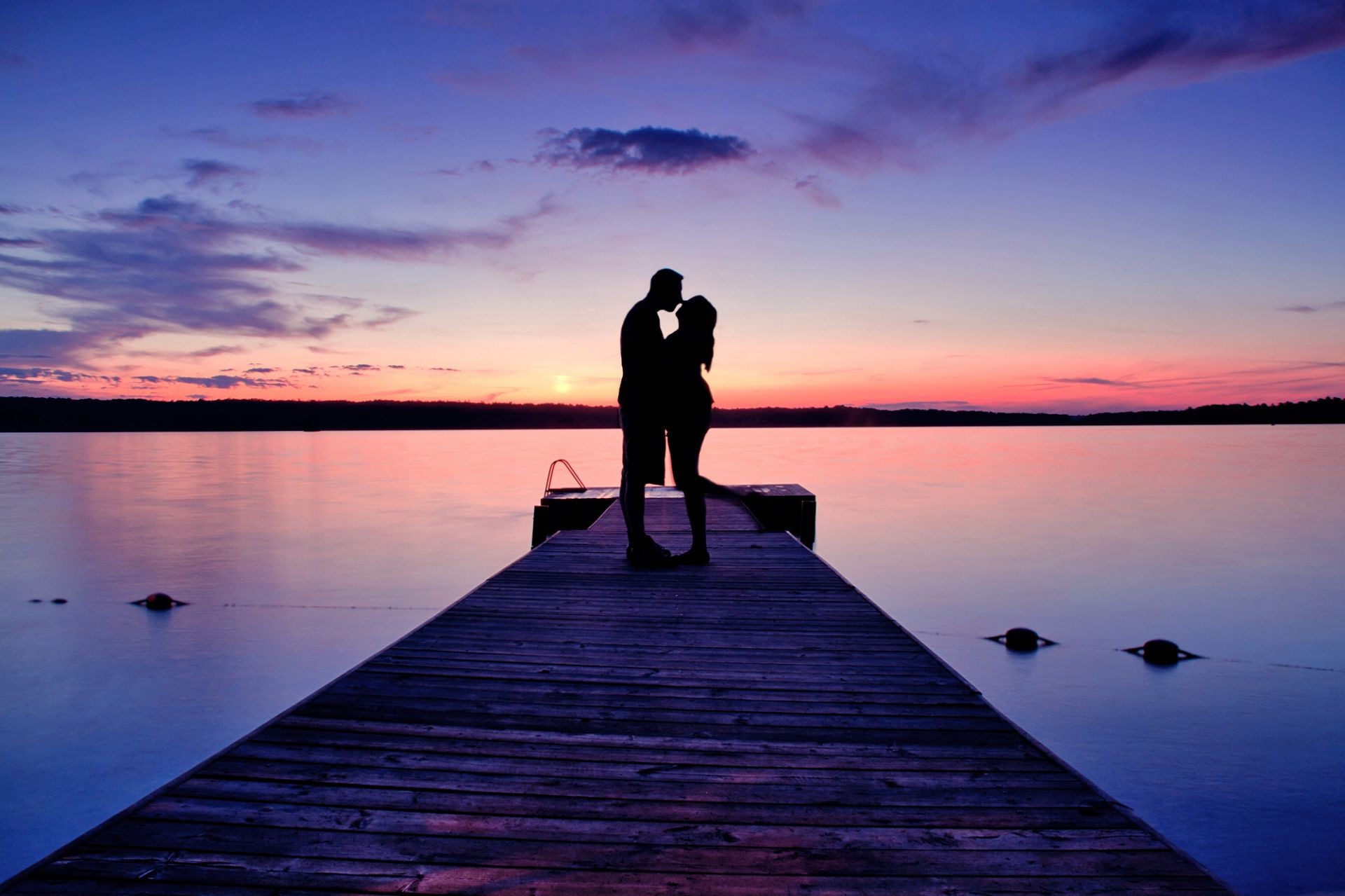 Deux amoureux sur le mastic au milieu du coucher du soleil