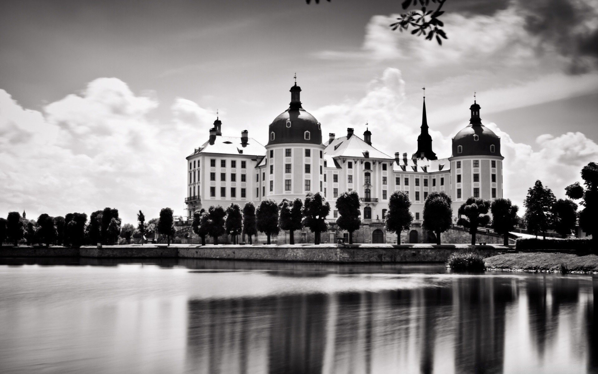 Photo en noir et blanc du bâtiment